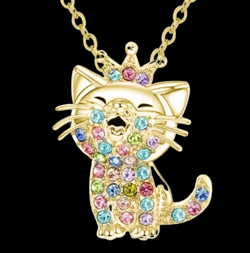 Намисто Кот Кошеня Золотий Різнокольорові Стрази Корона Мила Красива