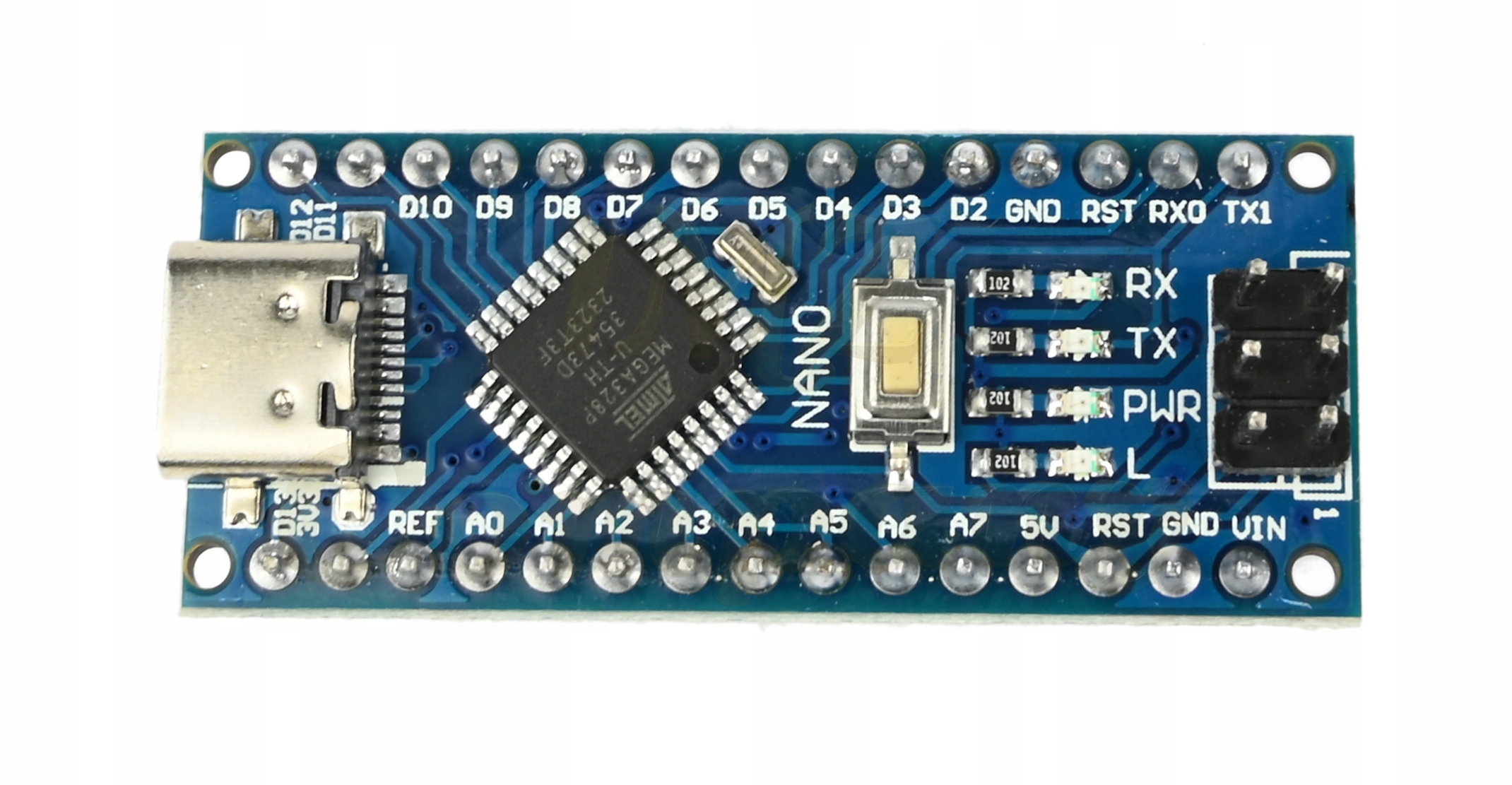 Плата Nano V3 є однією з найпопулярніших плат розробки з сімейства Arduino. Наш модуль повністю сумісний з Arduino Nano і може працювати з багатьма середовищами програмування, включаючи Arduino IDE. Стандартна відстань між контактами дозволяє легко встановити модуль на макетну плату, а популярний роз’єм USB-C забезпечує безпроблемний зв’язок із комп’ютером без непотрібних компонентів.