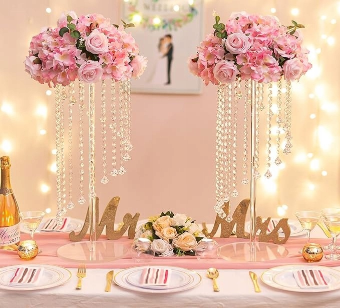 Додайте блиск до нудного весільного декору, елементів народження, прикраси вечірки, прикраси десерту. Високі геометричні вази з кришталевими намистинами для центральних елементів додають додаткове сяйво, щоб зробити вашу подію більш привабливою.