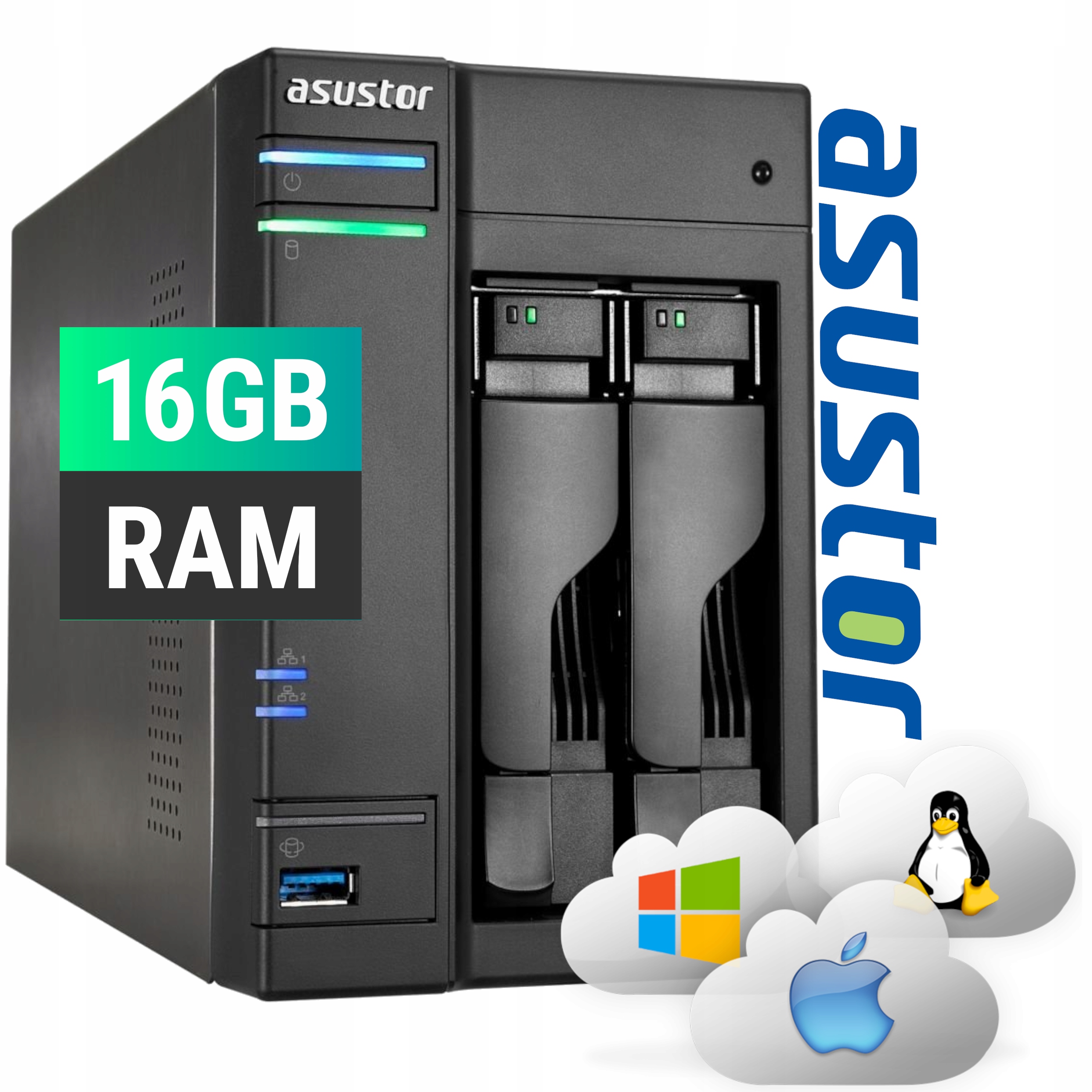 ASUSTOR AS6302T ДВОВІДСІВНИЙ NAS СЕРВЕР USB-C HDMI CLOUD | 16 ГБ оперативної пам’яті!