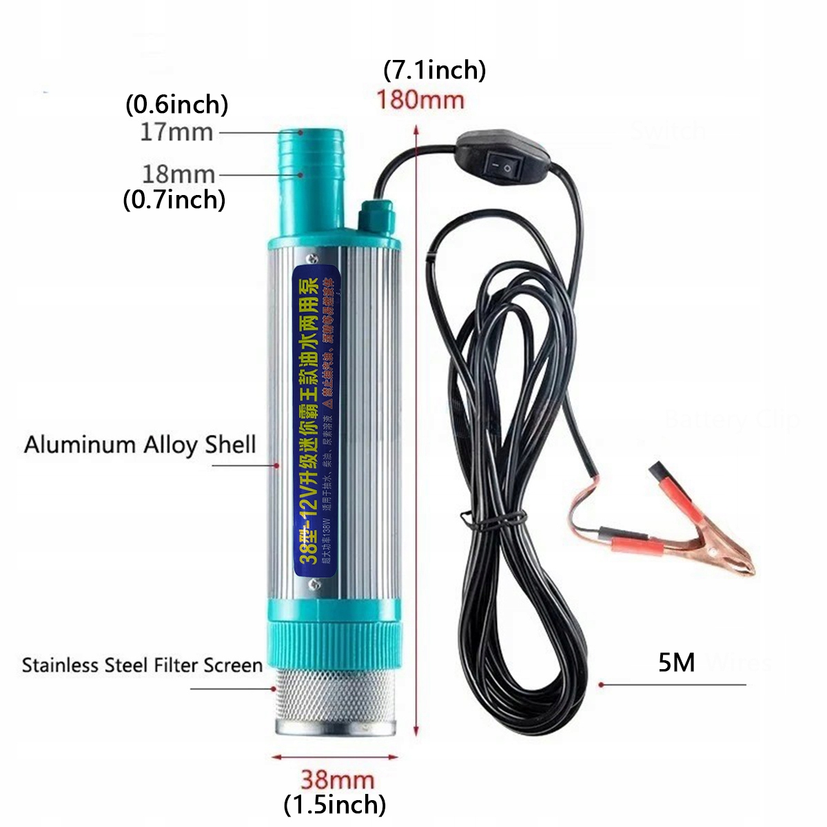 12 В 38 мм 30 л/ хв. насос для підводного автомобіля для дизельного масла з нержавіючої сталі 138 Вт насоса для передачі води з 5 м