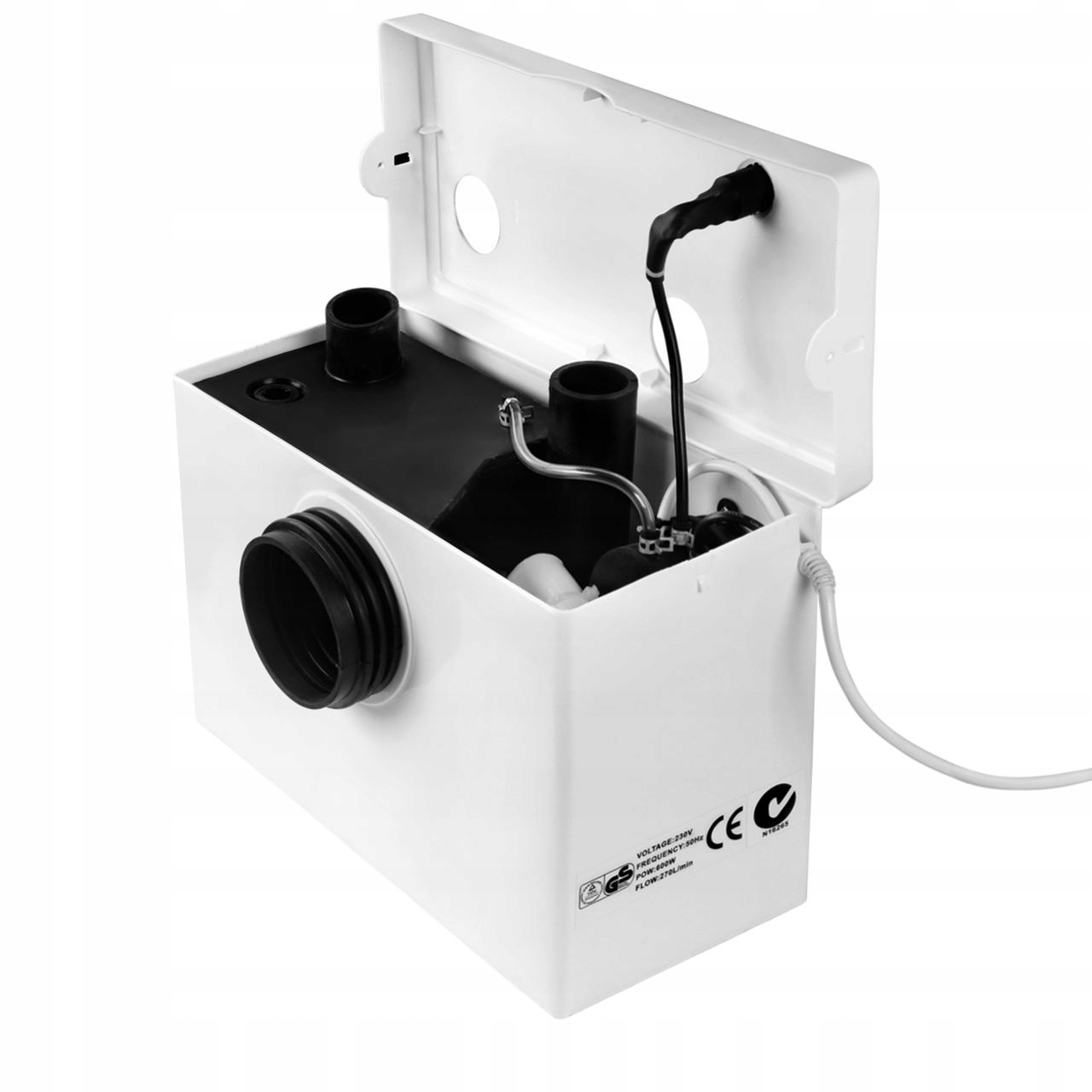 Пристрій використовується для подрібнення та відкачування відходів з підключених до нього пристроїв, таких як унітаз, біде, умивальник, раковина, душовий піддон, ванна, пральна або посудомийна машина.