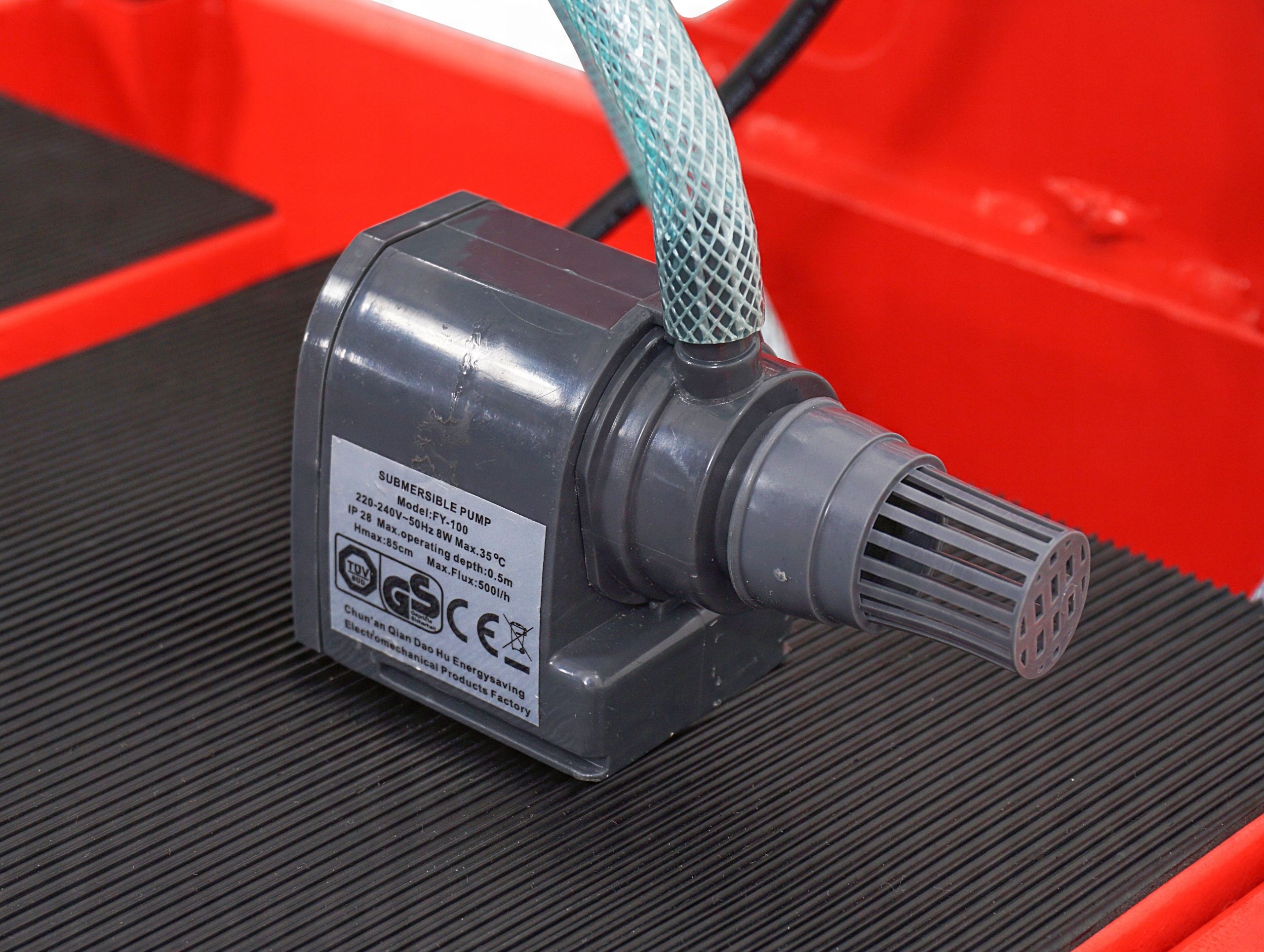 Робочий стіл витягується з коробки для водного сміття. Всередині також є автоматичний водяний насос з фільтром, який зрошує та охолоджує алмазні диски під час роботи