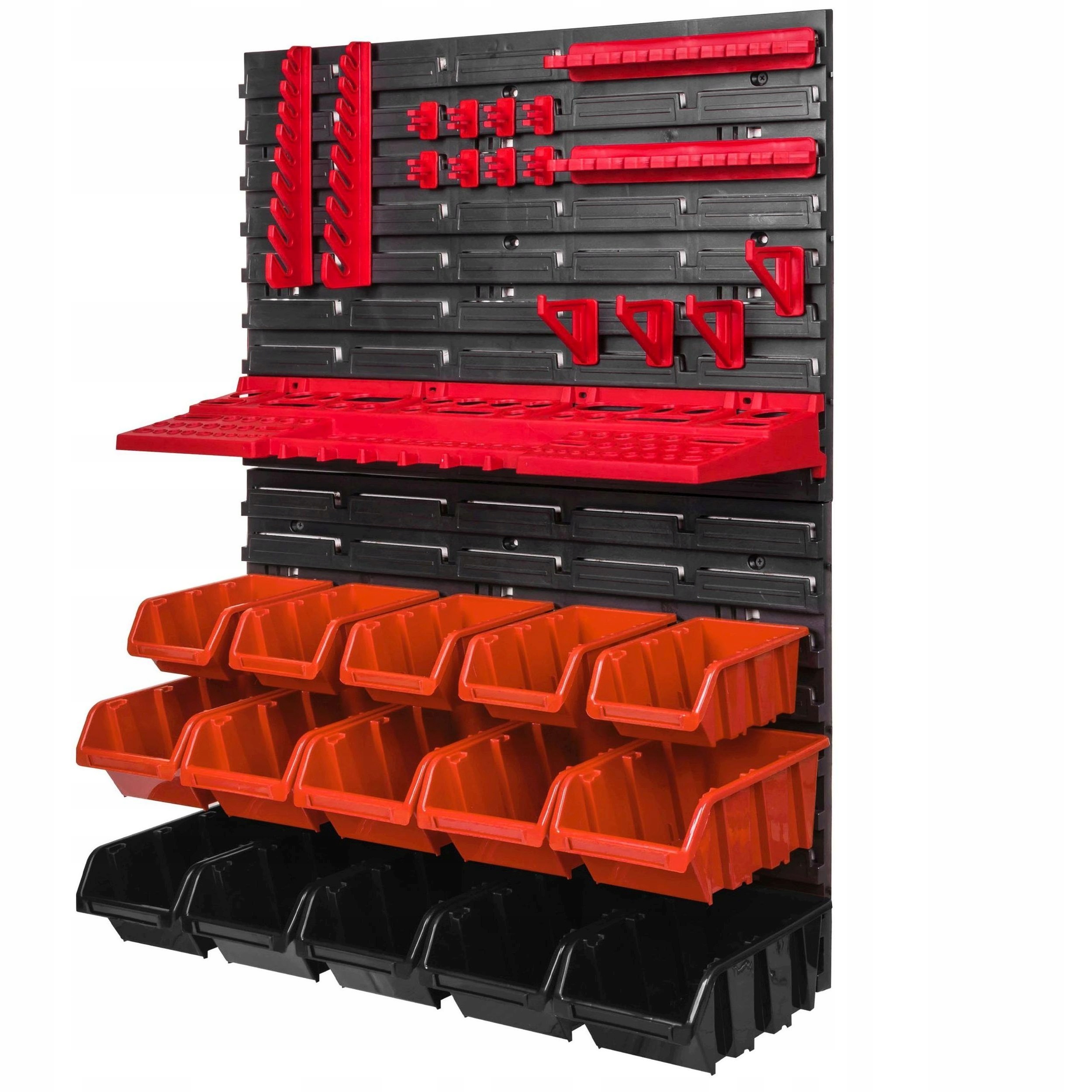 - Набори тримачів: Набір включає: полицю для інструментів 580 x 158 x 67 мм, 4 тримачі для ключів (2 вертикальні, 2 горизонтальні), 8 тримачів для викруток, маленькі інструменти , 4 вішалки 5,5 см, 4 вішалки 3,5 см.