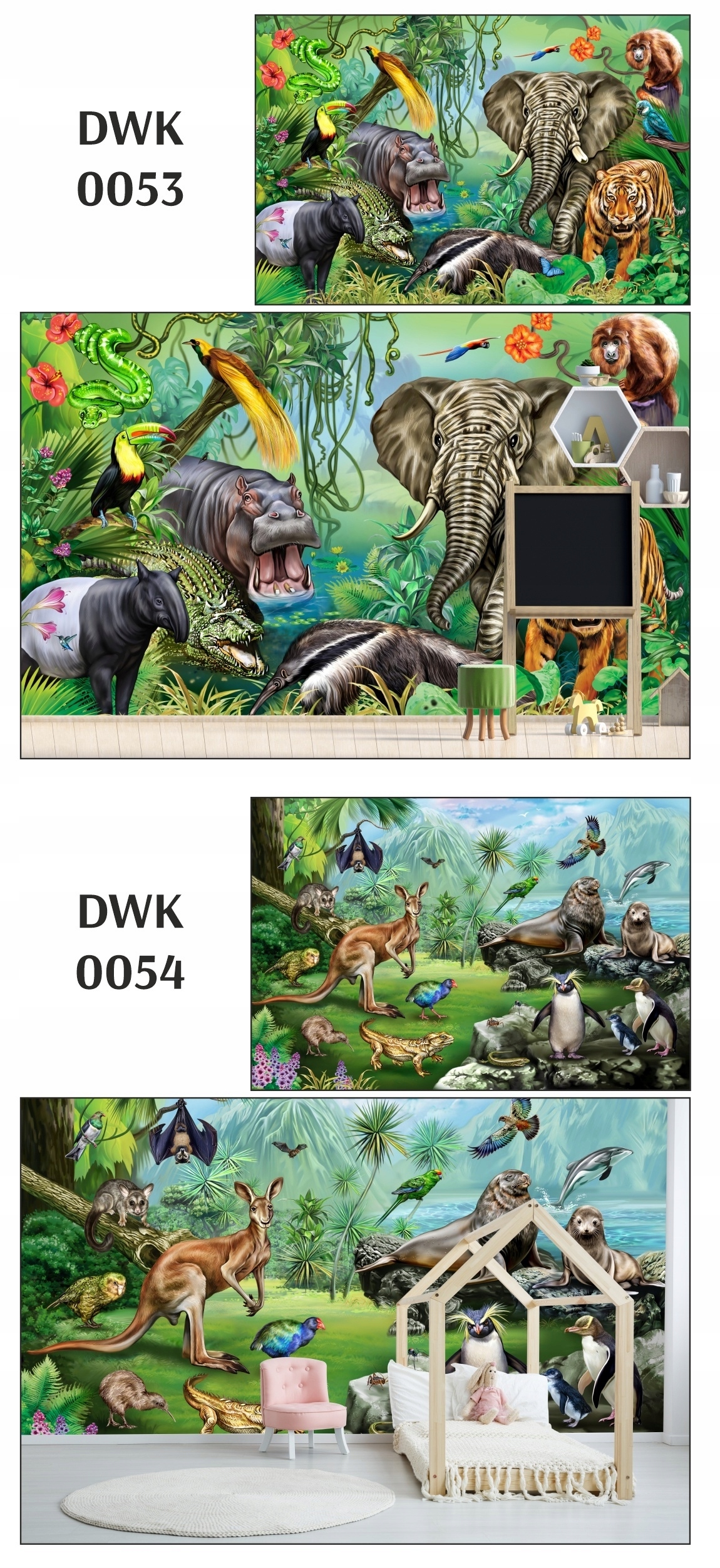 Настінні фрески сафарі джунглі тропіки лісового зоопарку дикі тварини гори долоні 290 г.