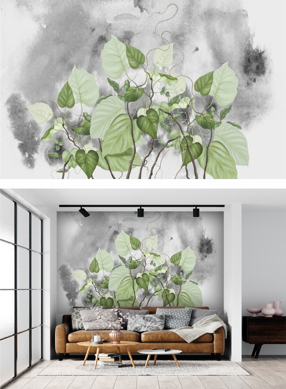 Настінні муральні тропічні пальмові листя Джунглі Квіти графіки # візерунки