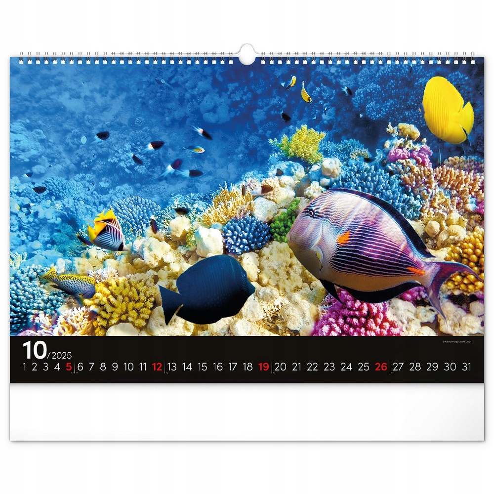 Досліджуйте красу підводного життя світових океанів у цьому великоформатному календарі. Морські коники, восьминоги та корали виділяються на розкішному цупкому папері.