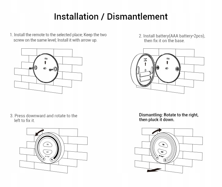 Настінний пульт контроль FUT087 Mi-Light - це пристрій, призначений для підтримки світлодіодного освітлення MONO, CCT і RGB+CCT. Він дозволяє плавно регулювати яскравість білого світла. Зв'язок з продуктами відбувається по бездротовому зв'язку. Пристрій живиться від 2 батарейок ААА, призначених для поверхневого монтажу за допомогою двостороннього скотча або шурупів, що входять в комплект.
