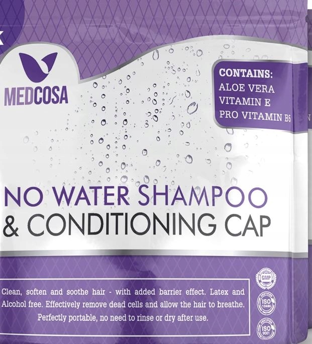 Medcosa No Wrinse Shampoop Capsules шампунь та кондиціонер у капелюсі без промивання для людей похилого віку, для миття сухого волосся алое та вітамінів 1>