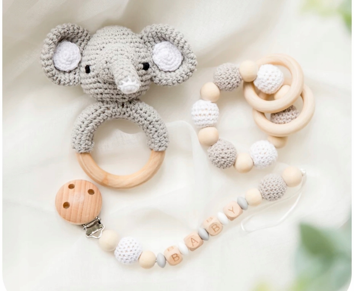Точне виготовлення з матеріалів найвищої якості: натурального бука та еко-бавовни. Ніжне брязкальце в м'якому слонику заспокоїть і підбадьорить малюка. йому грати. Під час прорізування зубів допоможе дерев’яний натуральний прорізувач.