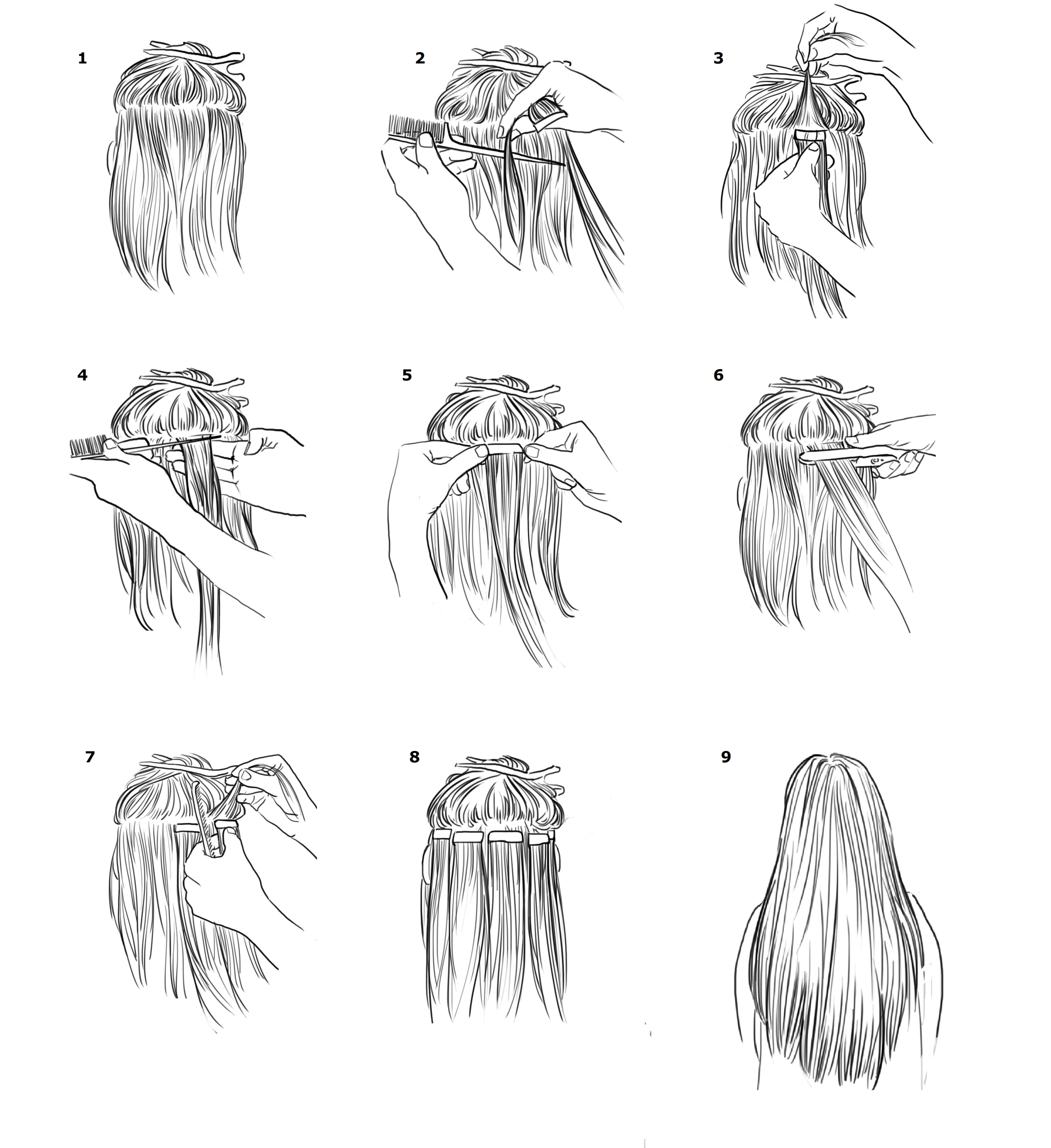 Розширення волосся за допомогою сендвіч крок за кроком: