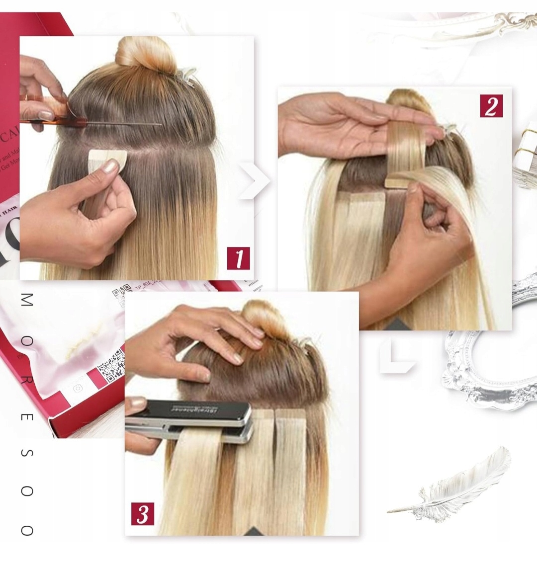 - Сильна адгезія: вона залишається безпечно. Стрічка невидима і зручна. Це може тривати довше з належною ретельністю. Легко зняти. Немає залишків. Матеріал стрічки був спеціально розроблений та виготовлений для видалення, не прилипаючи до власного волосся