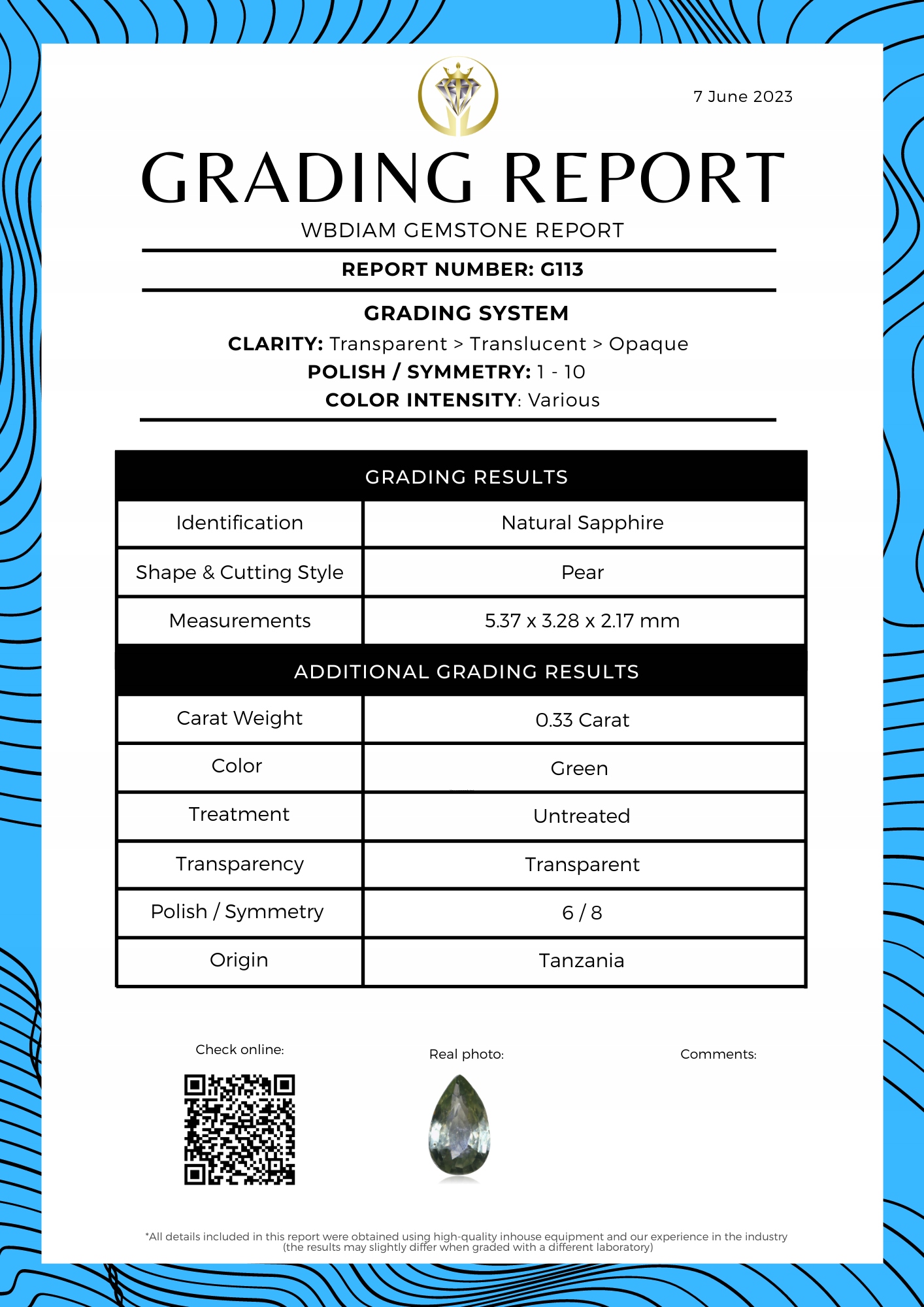 Натуральний сапфір - 0,33 карата - зелений - краплеподібний