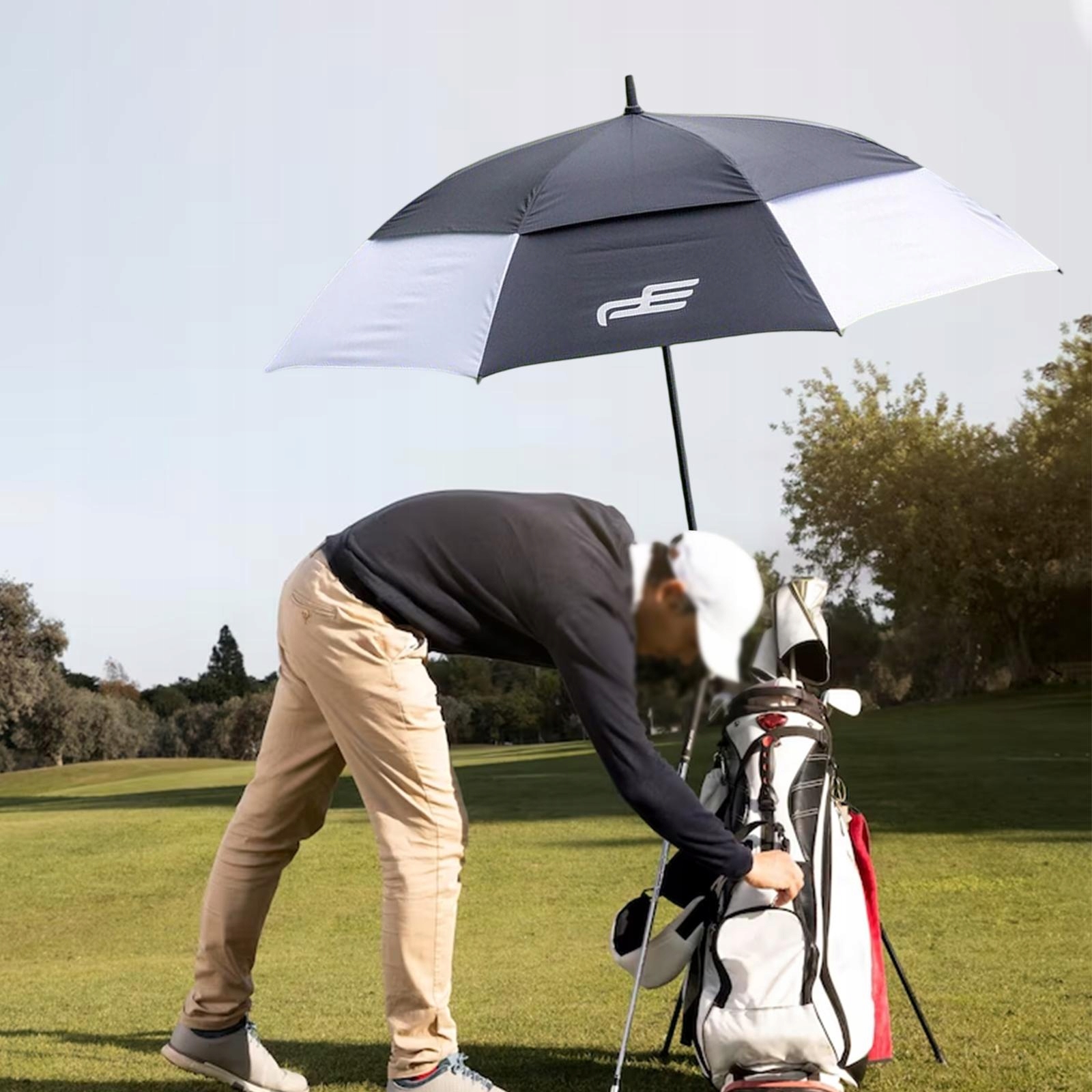 ПАРАСОЛЬКА ДЛЯ ГОЛЬФУ: має великий 53-дюймовий купол і міцну конструкцію, зручну ручку, міцну раму та механізм автоматичного відкривання.