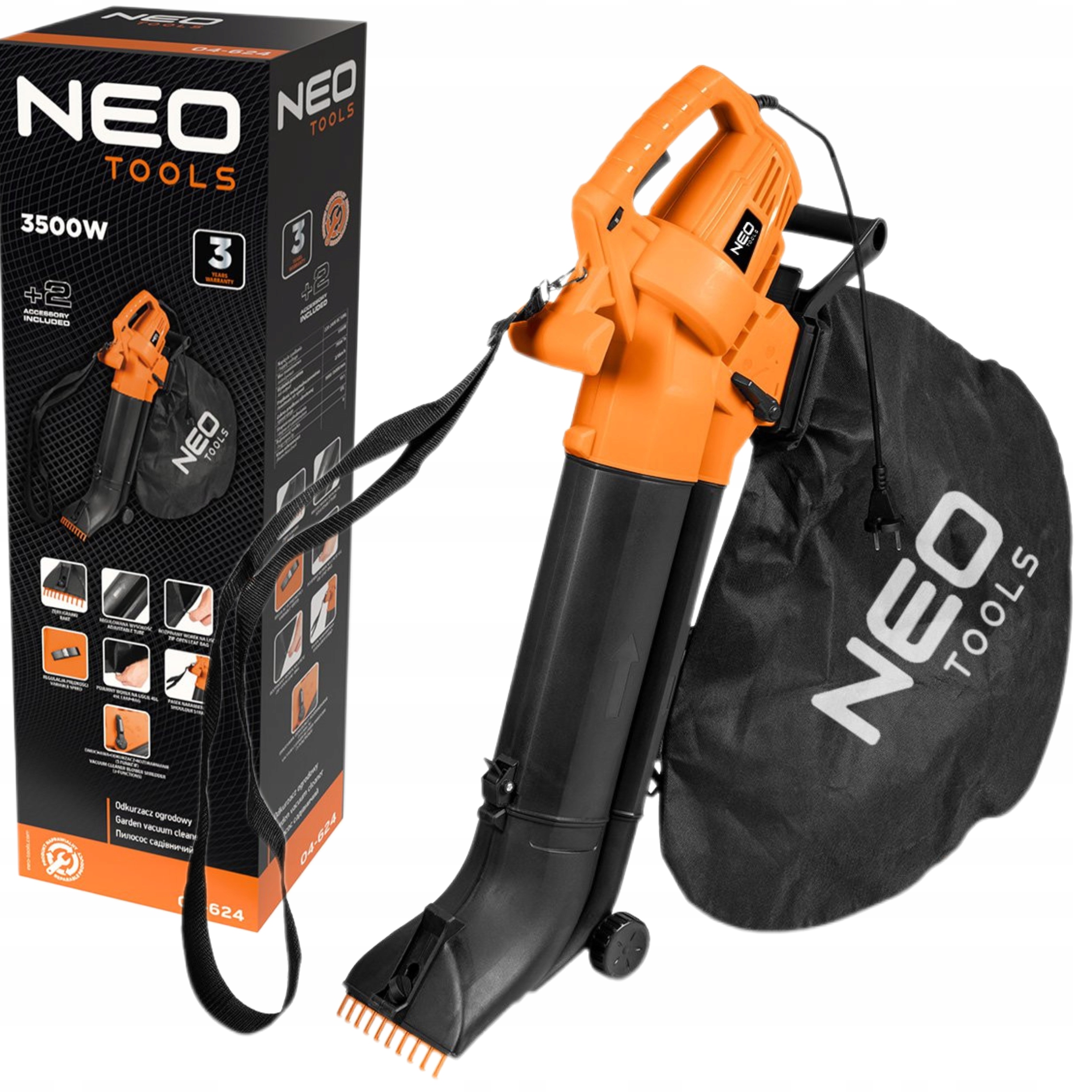 NEO ODKURZACZ OGRODOWY DO LIŚCI DMUCHAWA 3500W WOREK 45L 230V 04-624 3w1