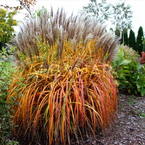 високий, рано квітучий Міссантус з прекрасними рожевими суцвіттями. Він росте до 1,8 м і разом із суцвіттям до 2,2 м. Характерна особливість цієї трави довга, звужується до вершин, арочні, зелені листя. Чіткий срібний нерв проходить через центр кожного листового леза. Квіти, які з’являються наприкінці літа (наприкінці VIII) збираються у чудовій, спочатку червоній, а пізніше сріблясті, випрямлені палички, встановлюються високо над листям. В кінці літа та восени грудки знебарвлюються в теплих відтінках помаранчевого кольору. Потім цей колір переходить у червоний колір, потім солом’яний колір, а листя повільно висохть. Залишившись на зиму, вони прикрашають сад майже до весни. Нерозумне росте найкраще на відносно вологих і родючих ґрунтах, у сонячних або злегка затінених положеннях. Залишилися для посадки на великих знижках, у водних садах, у спеціальних садах для декоративних трав, у натуралістичних припущеннях - один або кілька у групі. Підходить для сухих букетів.