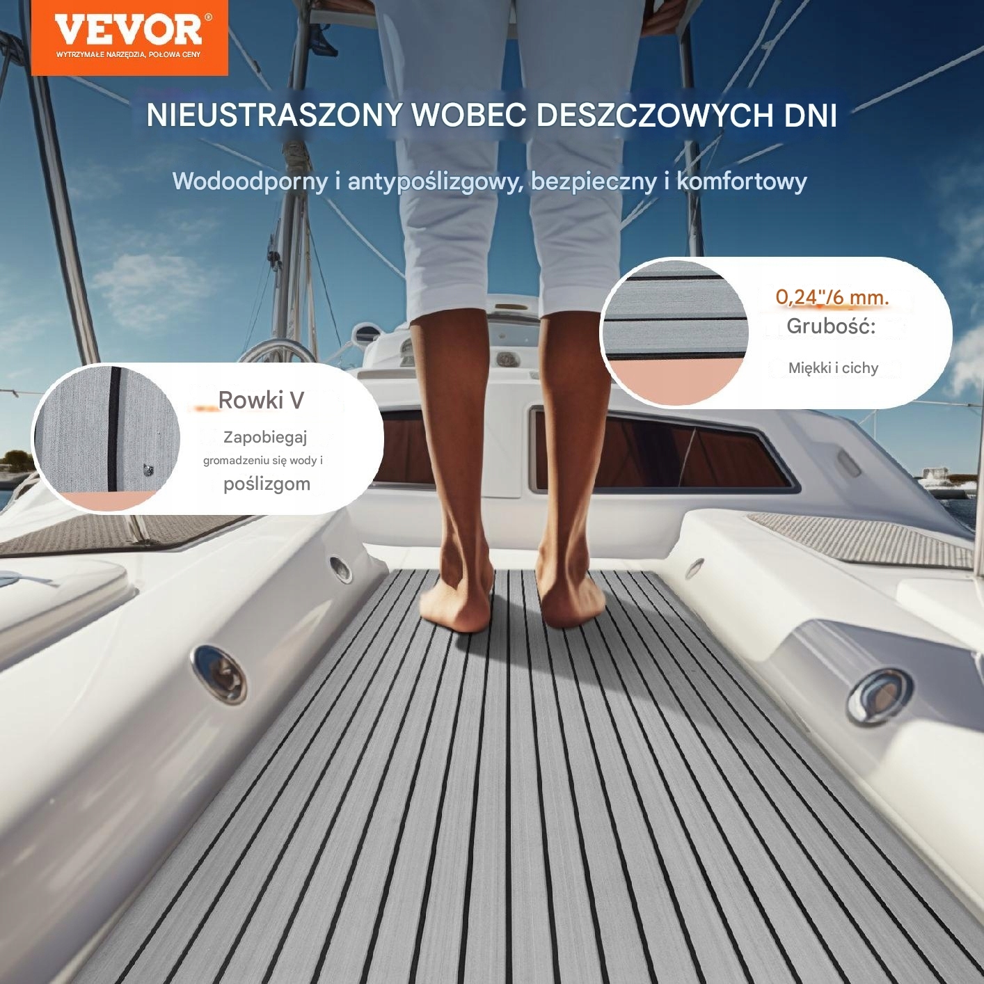 підлога vevor для човна з пазами у формі "v", матеріалом EVA та 3M клеєм забезпечує герметичність та захисні властивості.