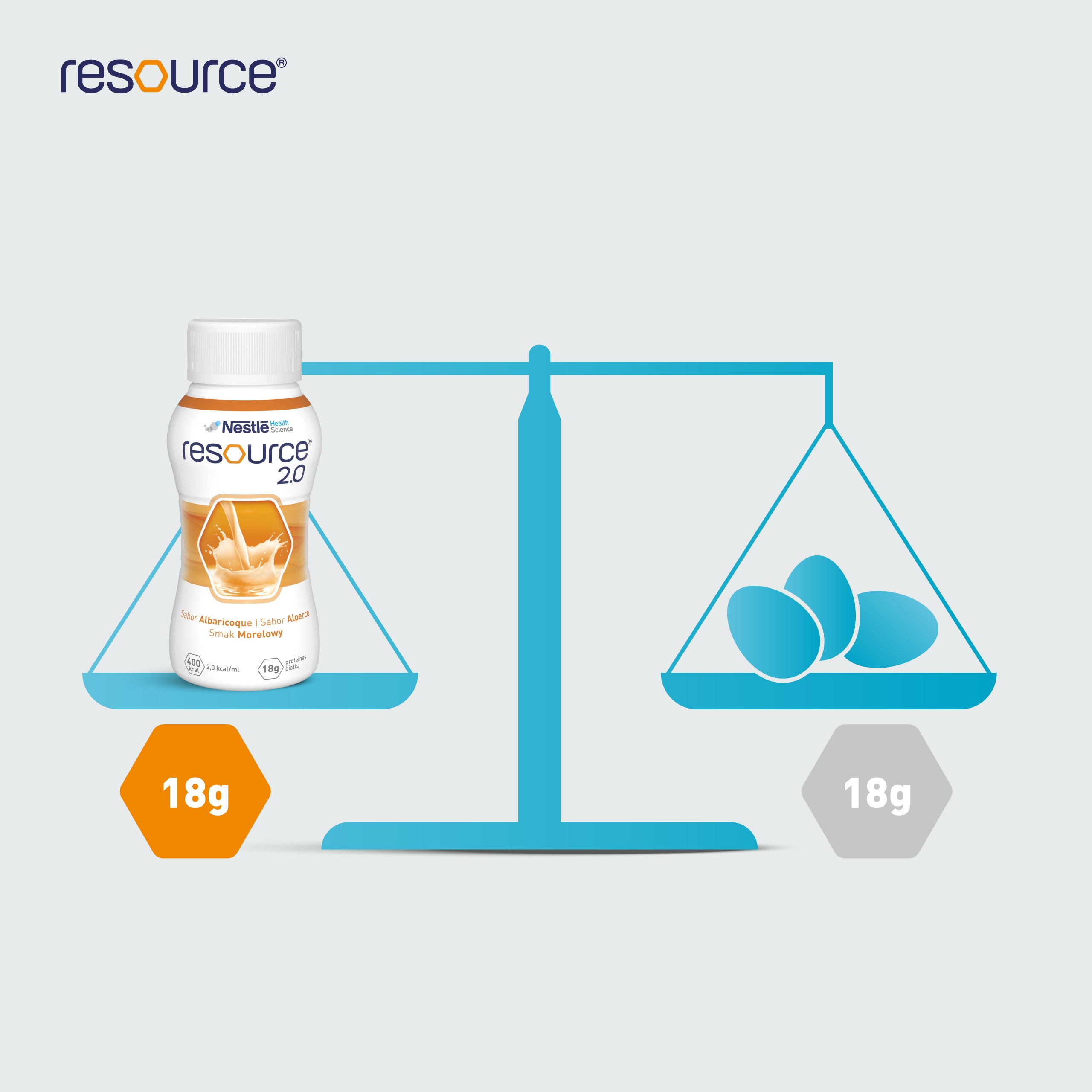 Nestle Resource 2.0 Спеціалізований харчовий препарат 4х200 мл аромат абрикоса для боротьби з швидким та значним схудненням, присвяченим людям із збільшенням попиту на енергію та поживні речовини 1>
