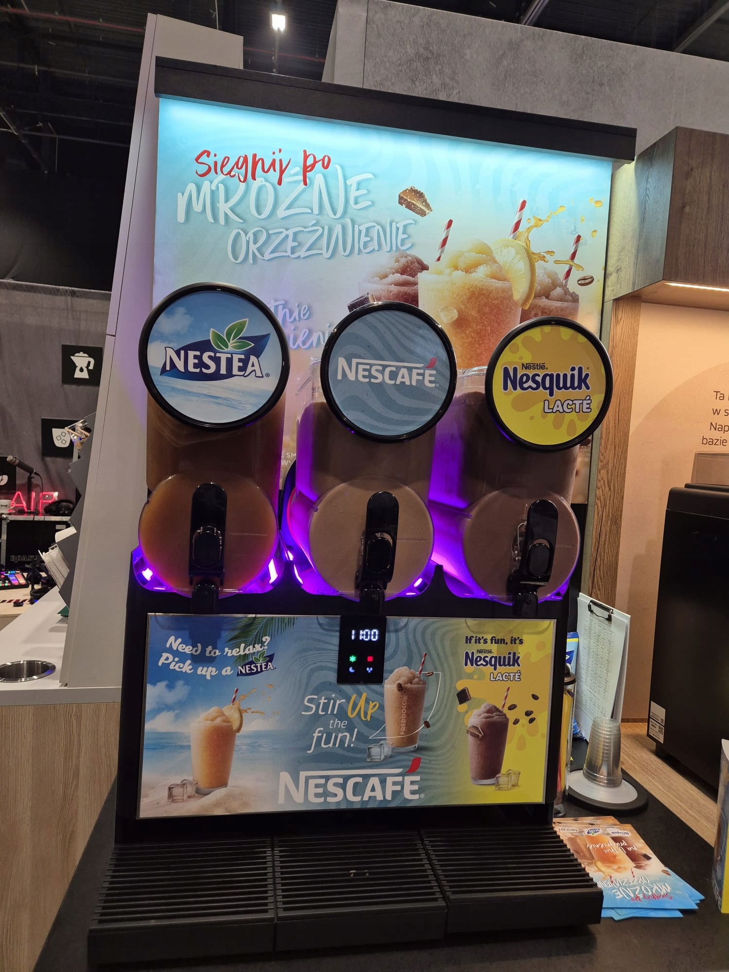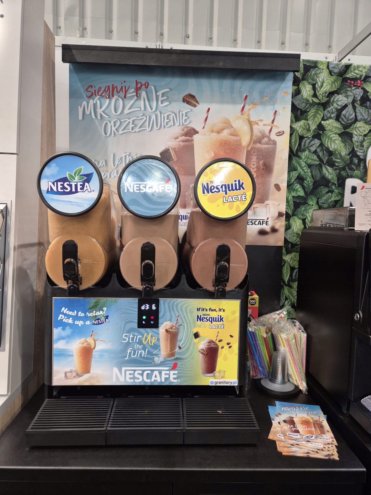 Granitor з виділеним барвистим шпоном Nestle. Пристрій призначений лише для підготовки продуктів Nestle. Ми надаємо маркетингову підтримку та дозвіл на продаж продуктів Nestle у ваших приміщеннях. Продати інноваційні продукти Granitor. Новий на польському ринку!