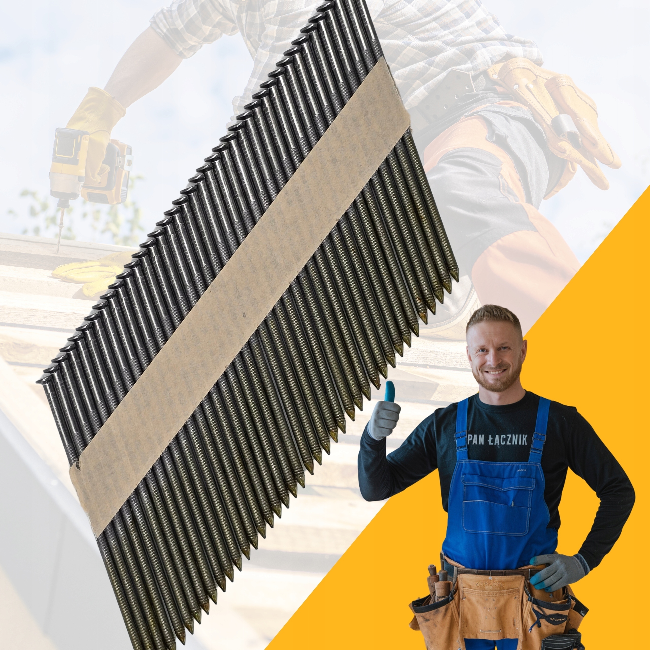 нігті в поєднанні з папером під кутом 34 ° - ідеальне рішення для професіоналів та саморобки. Виготовлений з міцної сталі, покрита чорним антикорозійним покриттям, забезпечуйте довговічність та надійність у кожному застосуванні.