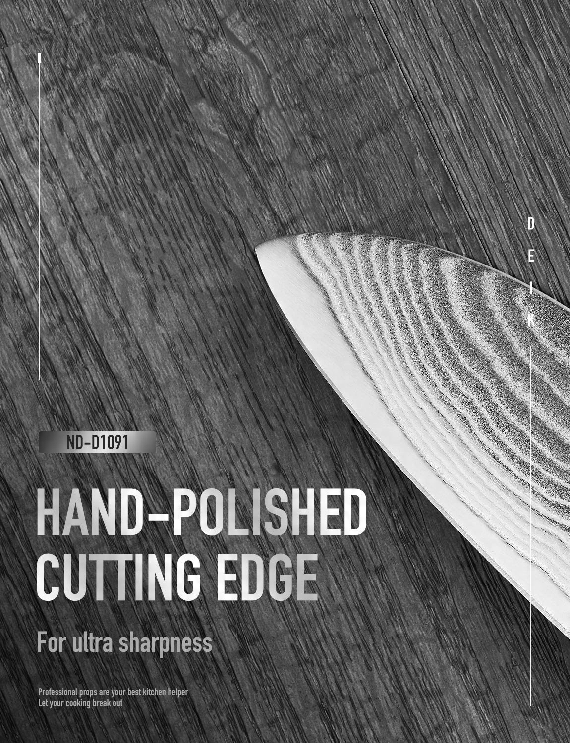 Дерев'яна ручка з делікатною шорсткістю запобігає вислизанню з мокрої руки. Рукоятка та лезо забезпечують ергономічний баланс, а рукоятка надзвичайно зручна. З DEIK ND-D1091 як професіонали, так і новачки зможуть максимально використати свої кулінарні навички.