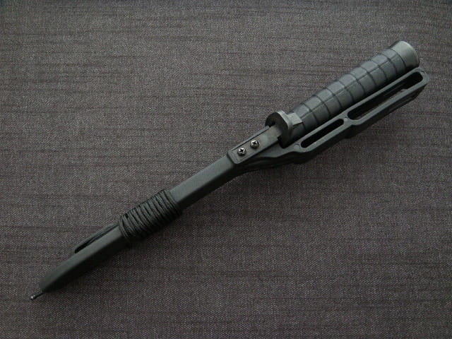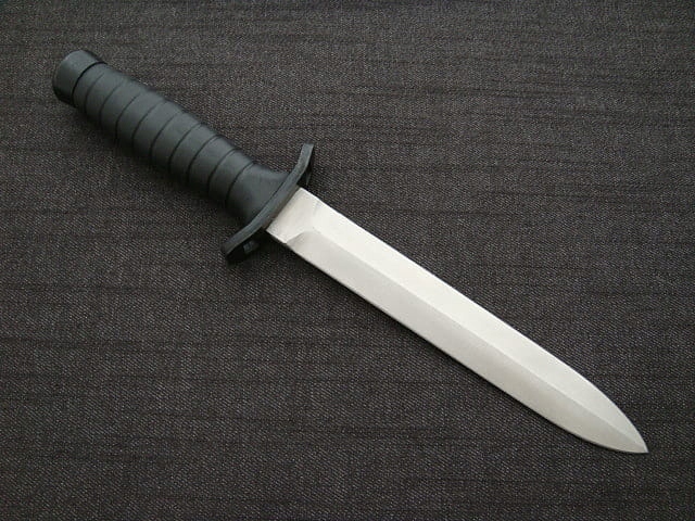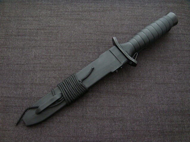 4 Використання 4034 пружинної сталі дозволило забезпечити високу міцність на вигин та стійкість до подрібнення. Загартовано Джелек захищає від випадкового ковзання руки до леза під час роботи ножа. Надихасть маслом гума, з якої виготовляється ручка, забезпечує адекватне зчеплення в будь -яких кліматичних умовах. Голова ручки дозволяє дути всі види або може діяти як молоток. Нож був розроблений для багатьох різних застосувань, його можна використовувати для спортивних цілей, наприклад кидаючи ніж, а також для багатьох чисто корисних застосувань, наприклад Зв'язування тварин, приготування їжі, різання гілки, мотузки, вичісування риби тощо