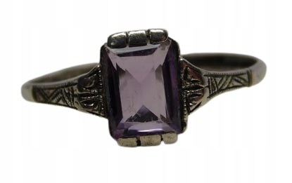 ДЕЛІКАТНА ДОВОЄННА КІЛЬЦЕ З АМЕТИСТОМ R.16 зі срібла 0,800 (штампована всередині каблучки) Вага 1,680 г. Розмір 16 Розмір оправи 6,1 х 8,6 мм. Висота 3,4 мм. Аметист напевно натуральний. Ювелірні вироби, виготовлені приблизно в 1920-1940 роках.