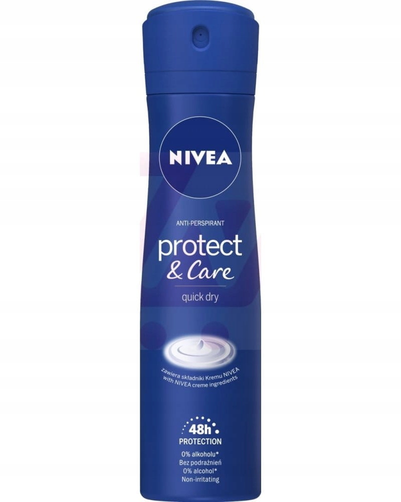 Найбільш дбайливий антиперспірант, який забезпечує 48-годинний захист і унікальний аромат NIVEA Protect & Care Спрей-антиперспірант містить інгредієнти та ароматизатор крему NIVEA, завдяки чому дбайливо доглядає за шкірою під пахвами та водночас. time забезпечує високоефективний захист від потовиділення. Це ідеальне поєднання ефективності та догляду дозволяє почуватися впевнено протягом усього дня. Антиперспірант запобігає надмірному потовиділенню протягом 48 годин, забезпечуючи вам непомітний аромат крему NIVEA. Засіб не містить спирту, також доступний у рол-он і стіках.