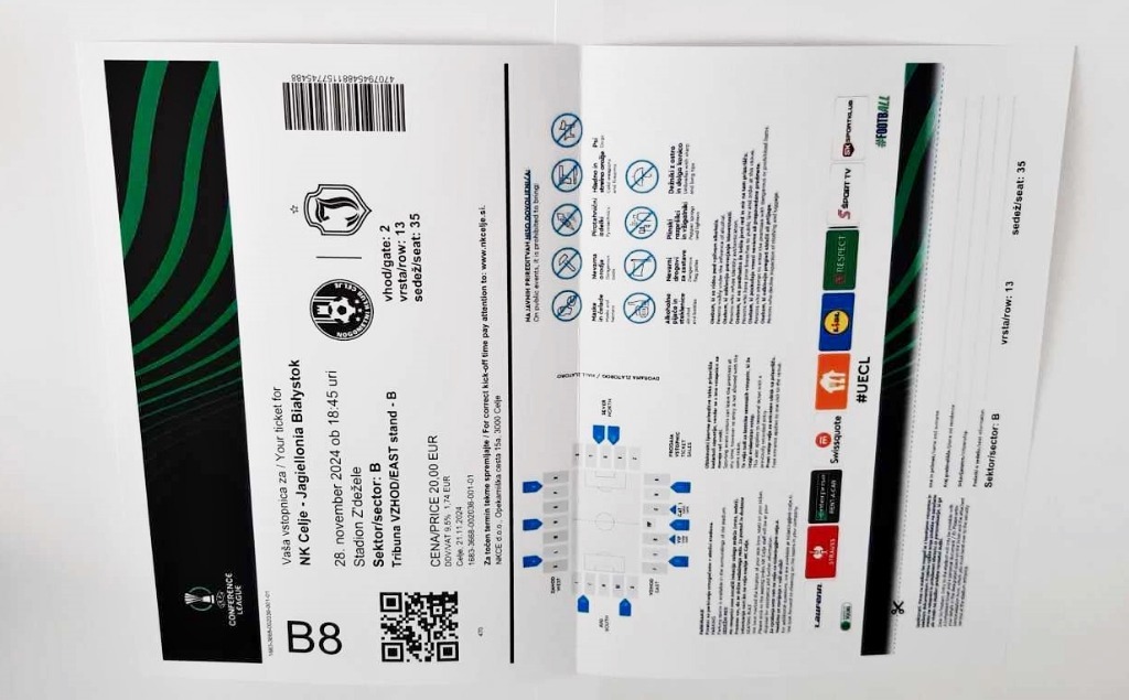 NK CELJE - JAGIELLONIA Białystok 28.11.2024 ebilet