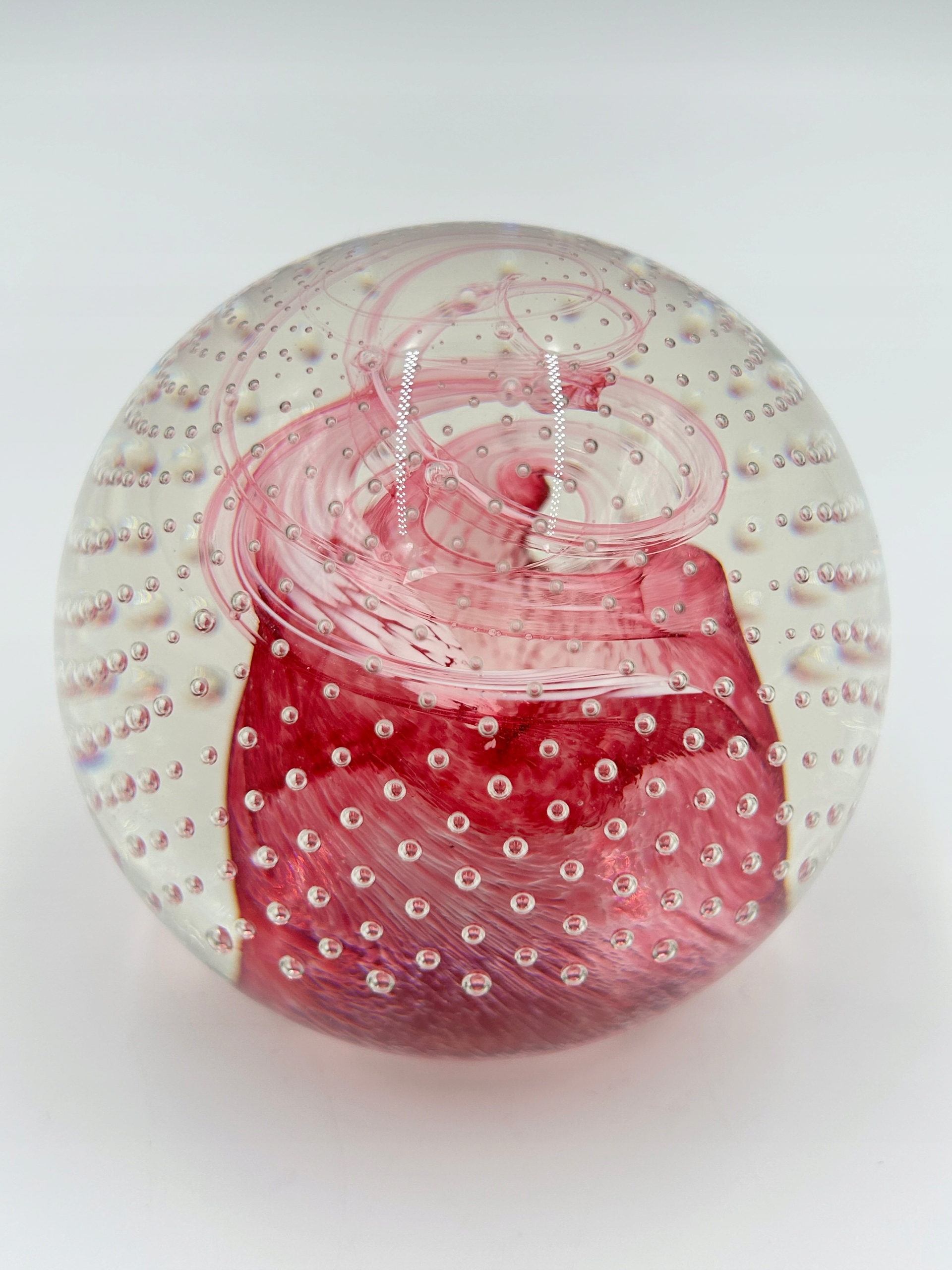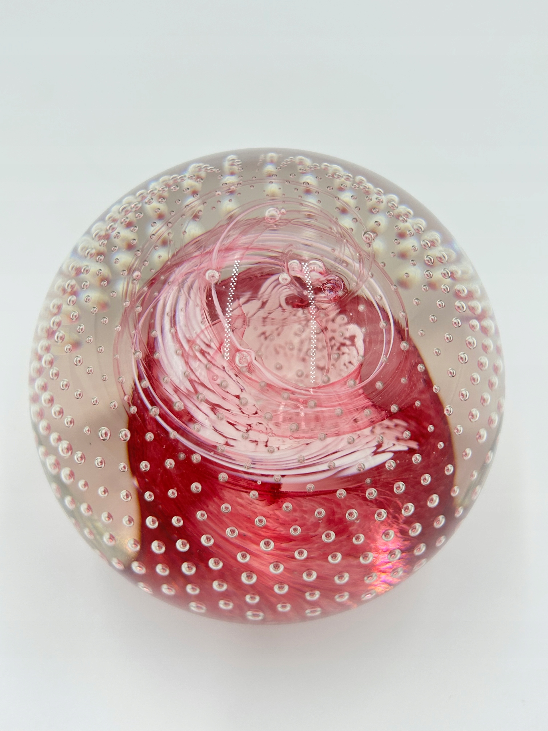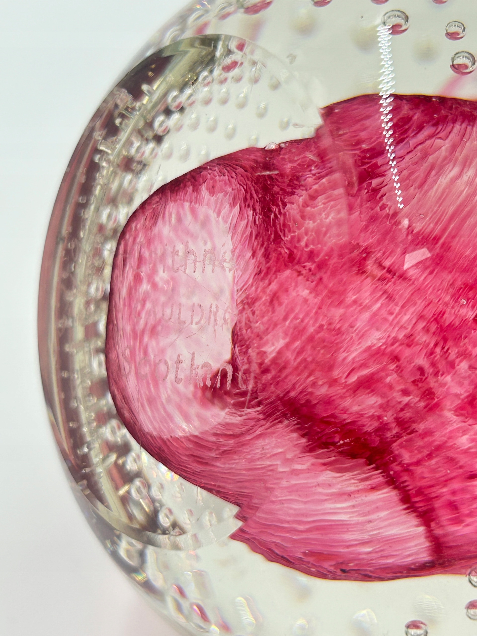 Тема продажу -це кнопка шотландської скла для Caithness Scotland м’яча, укладена, з декоративним інтер’єром. Прекрасний декоративний предмет буде цікавим столом або прикрасою полиць.