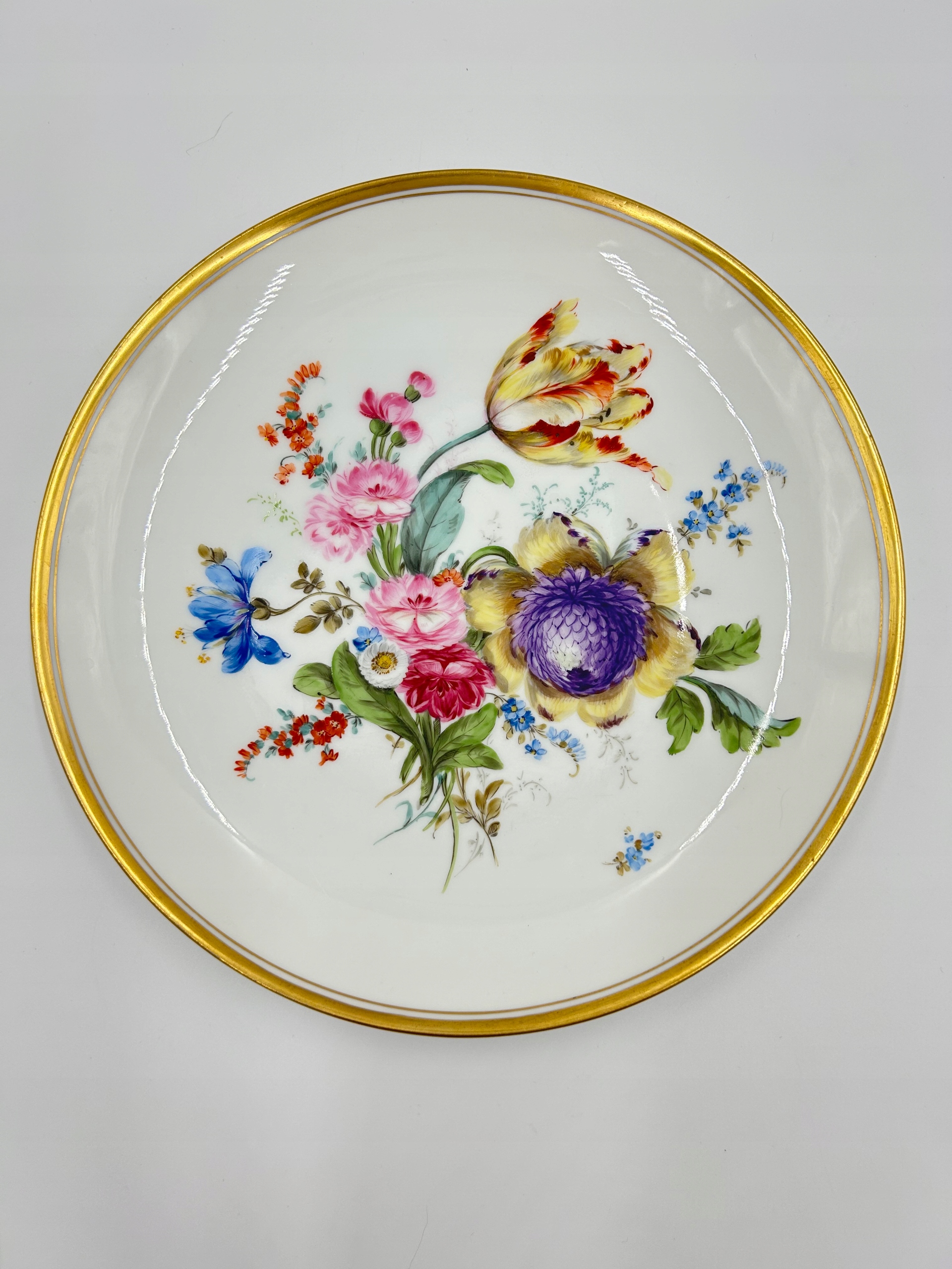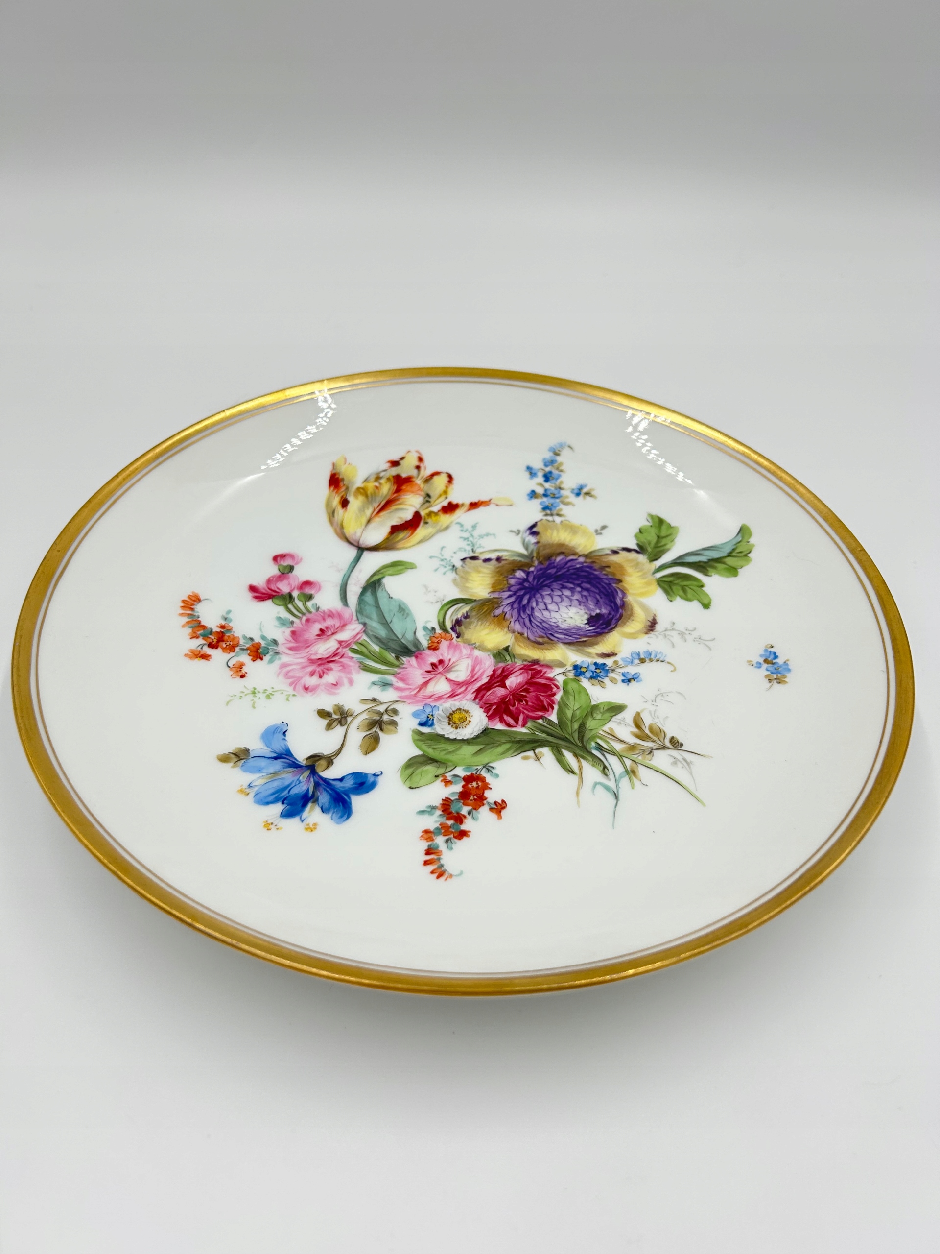 Тема продажу - це елегантна тарілка, прикрашена букетом квітів, позолоченим краєм. Прекрасний предмет колекціонера, я рекомендую його збагатити власну колекцію.