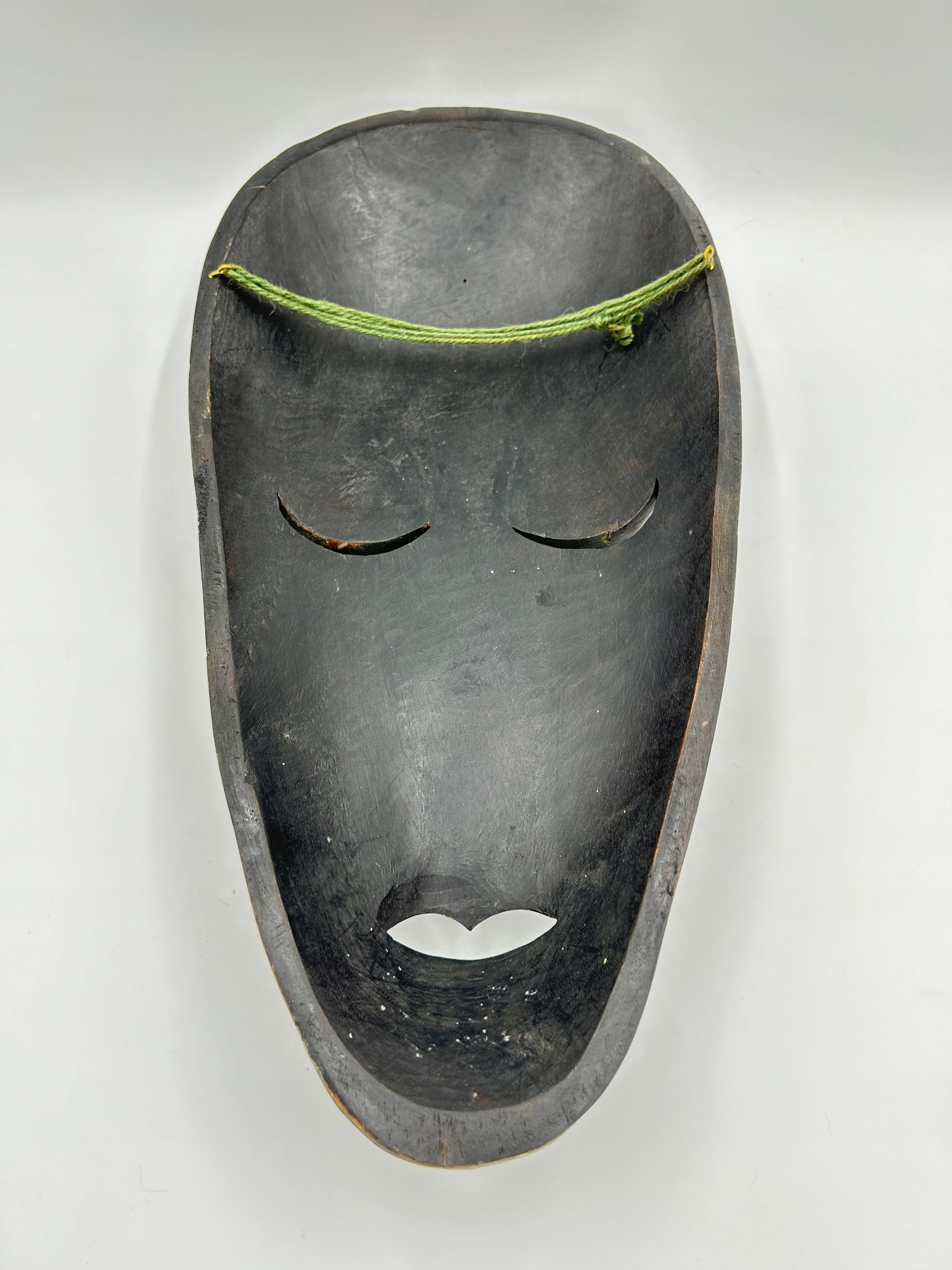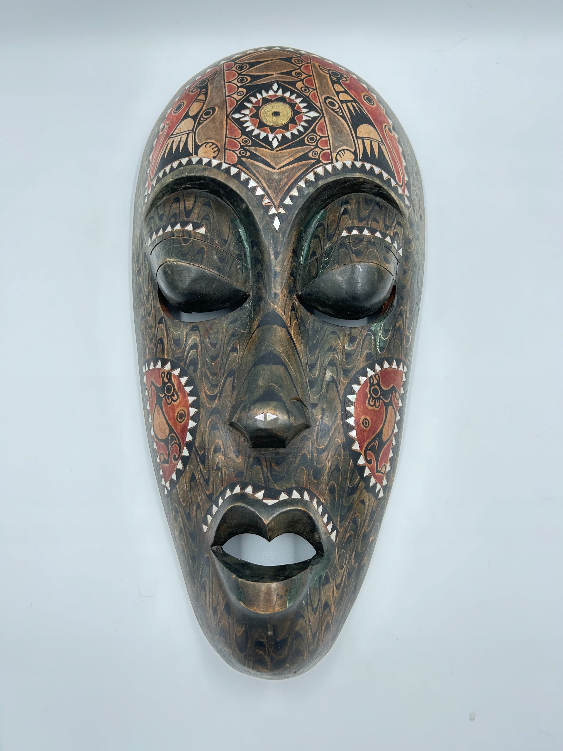 Тема продажу - це унікальна велика маска, виготовлена з одного шматка екзотичної деревини. Прикрашений картиною. Вирізана маска, очі та губи відкриті. На задній частині на стіні є тримач підвіски. Унікальний предмет для колекціонерів.