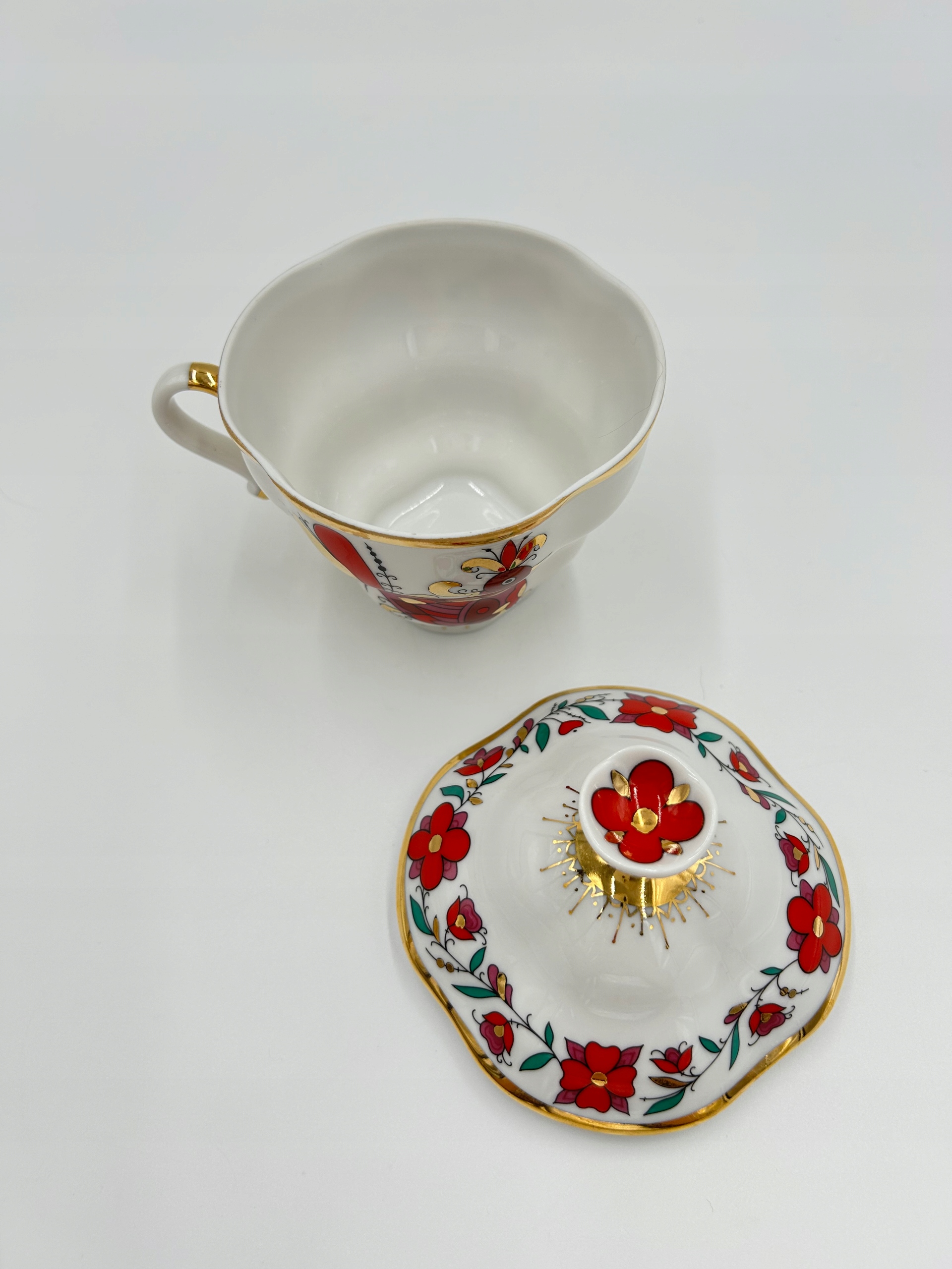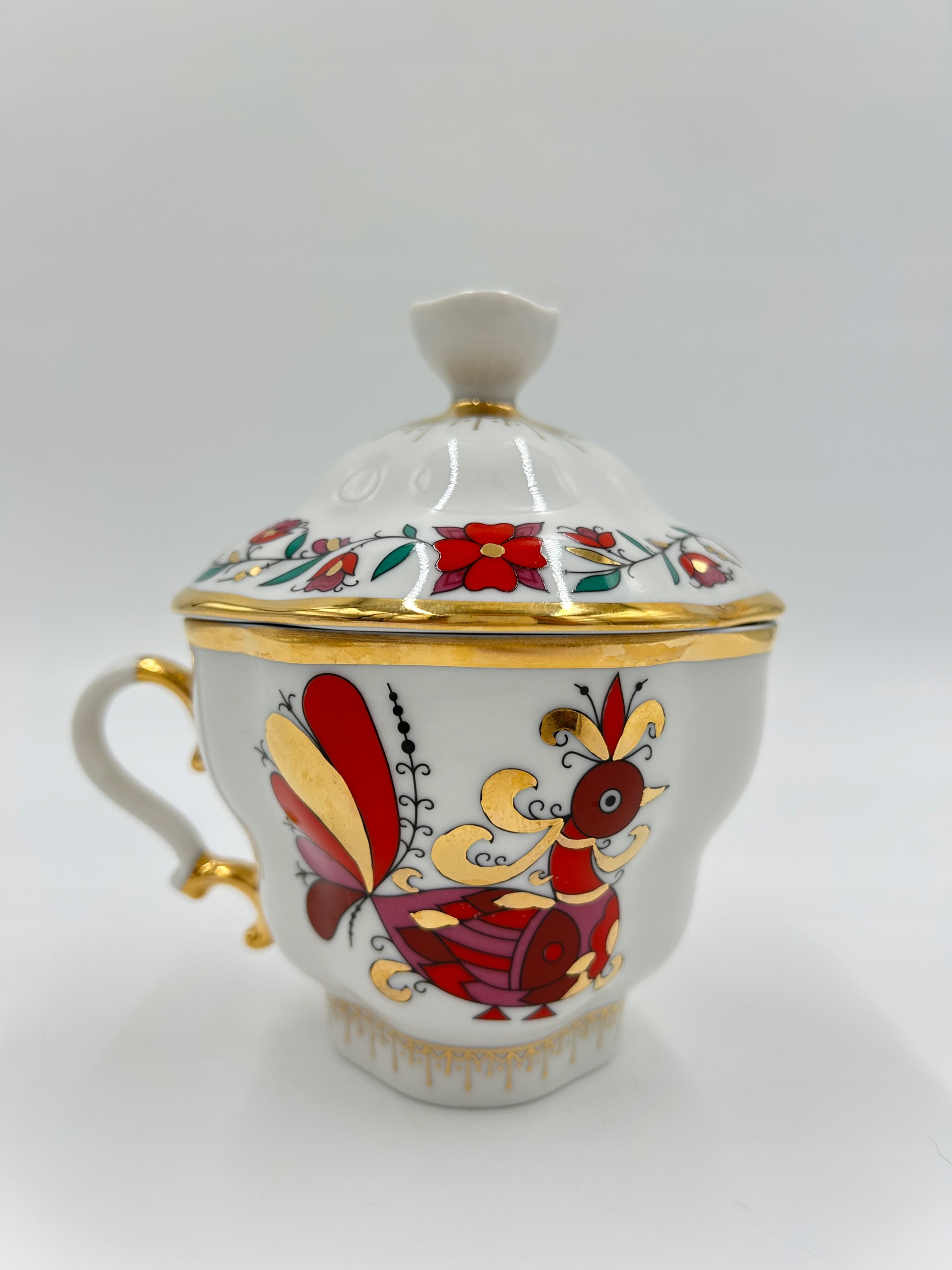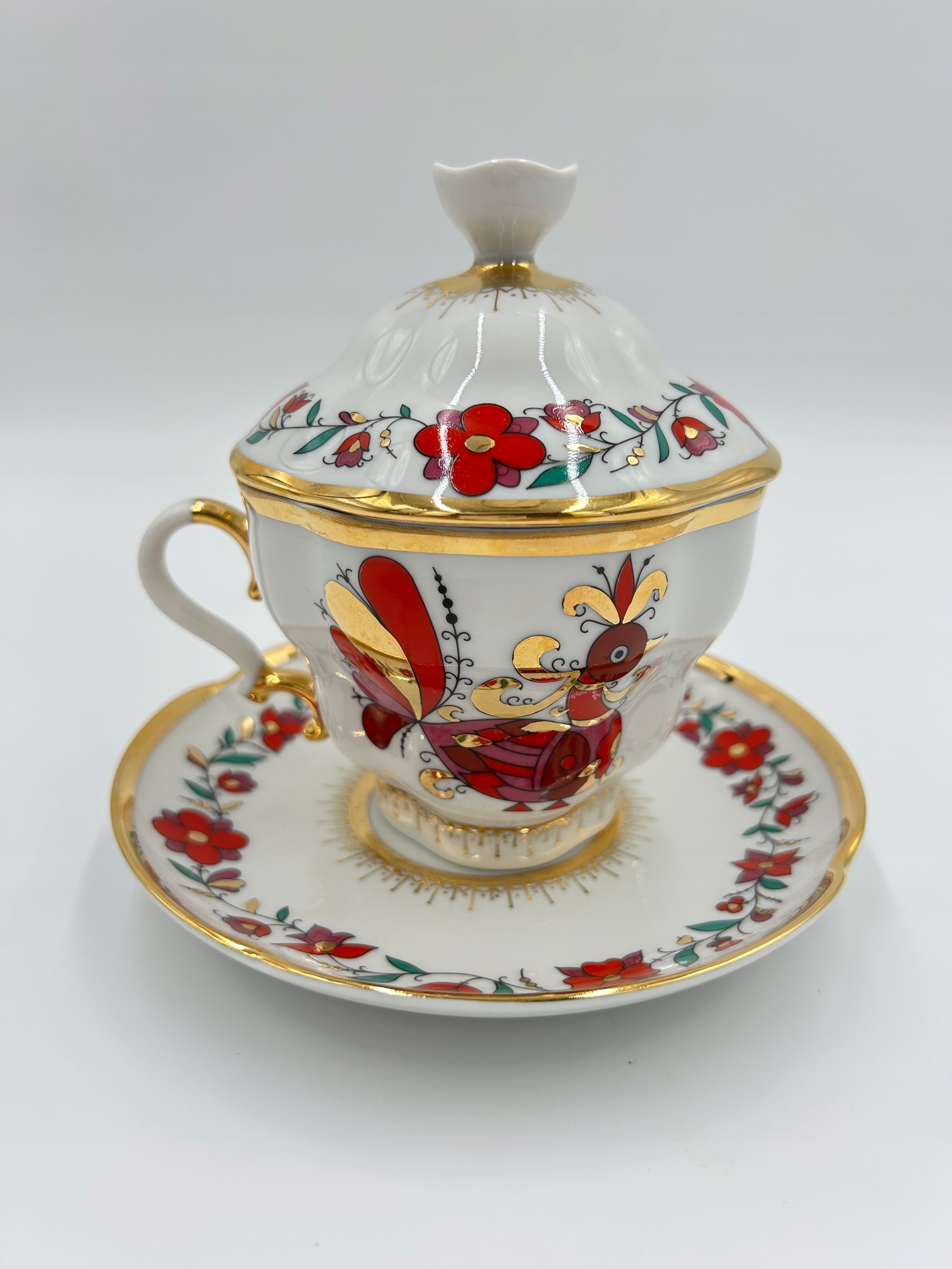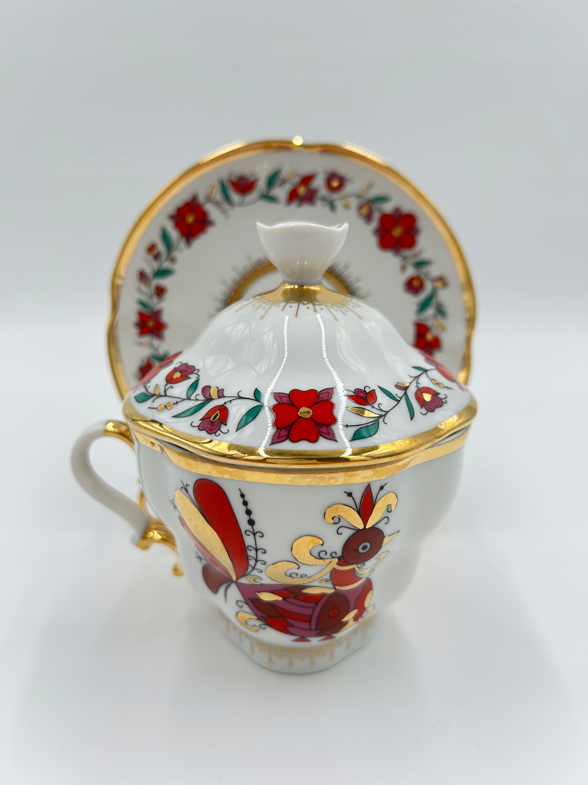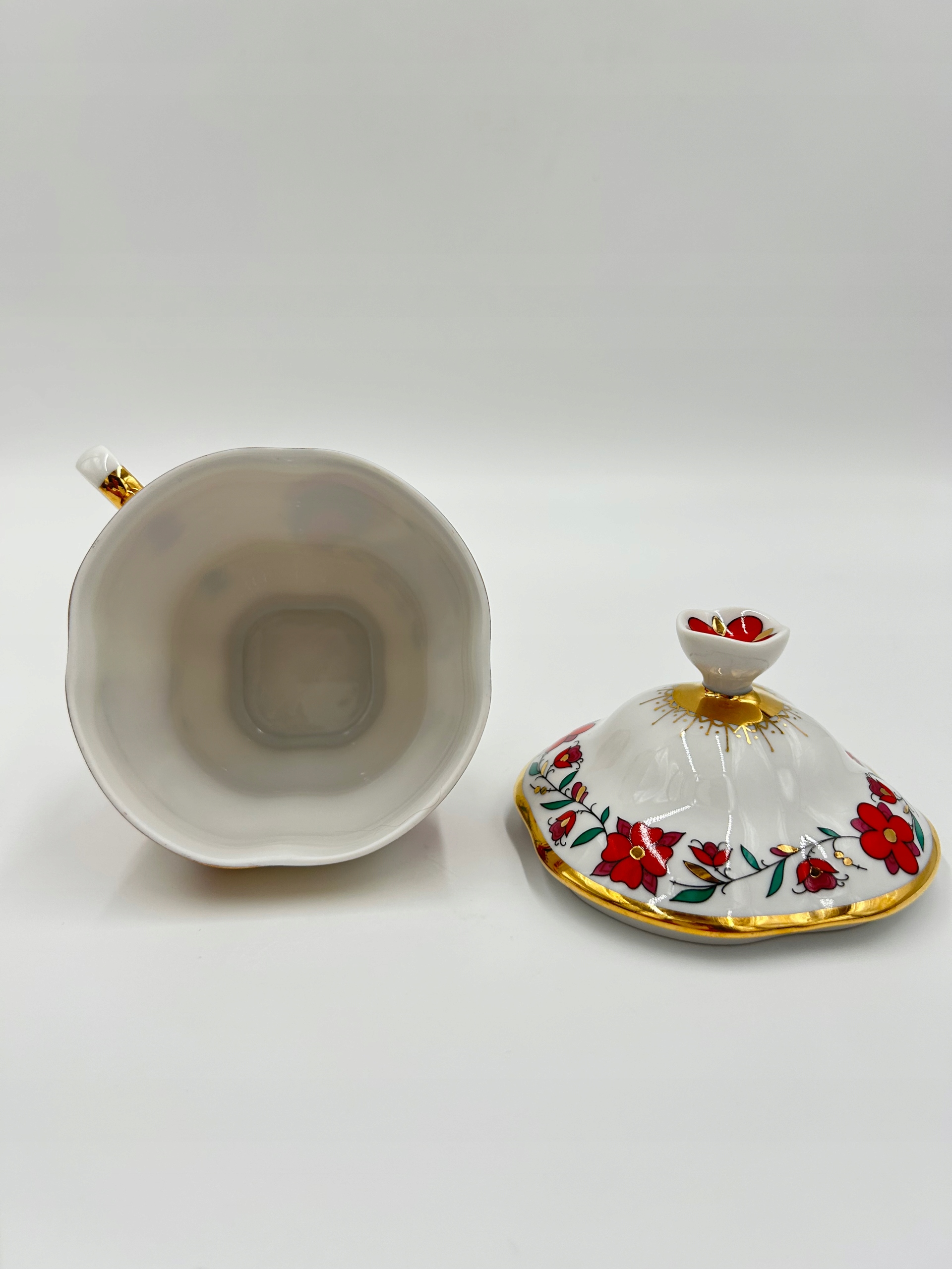 Тема продажу - це чарівна порцелянова чашка з блюдцею та кришкою, від знаменитої порцелянової фабрики Lomonosowa. Довідковий імперський порцелян 1744 Санкт -Петербург.