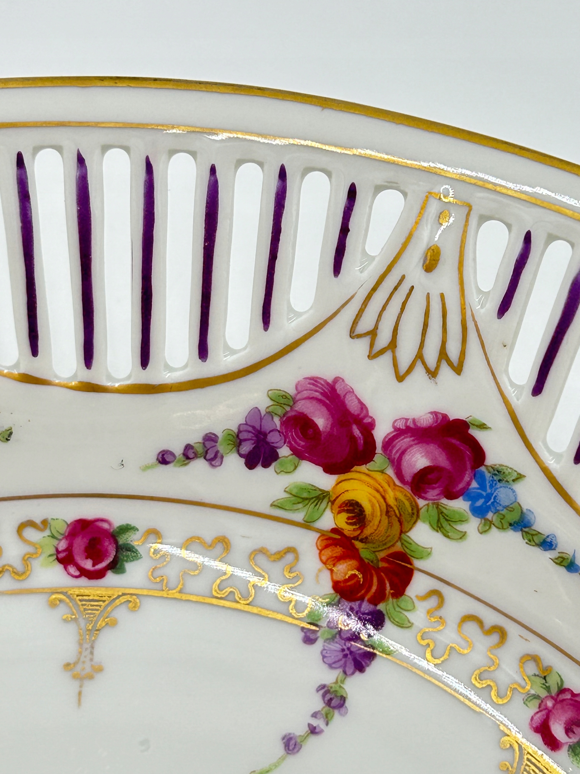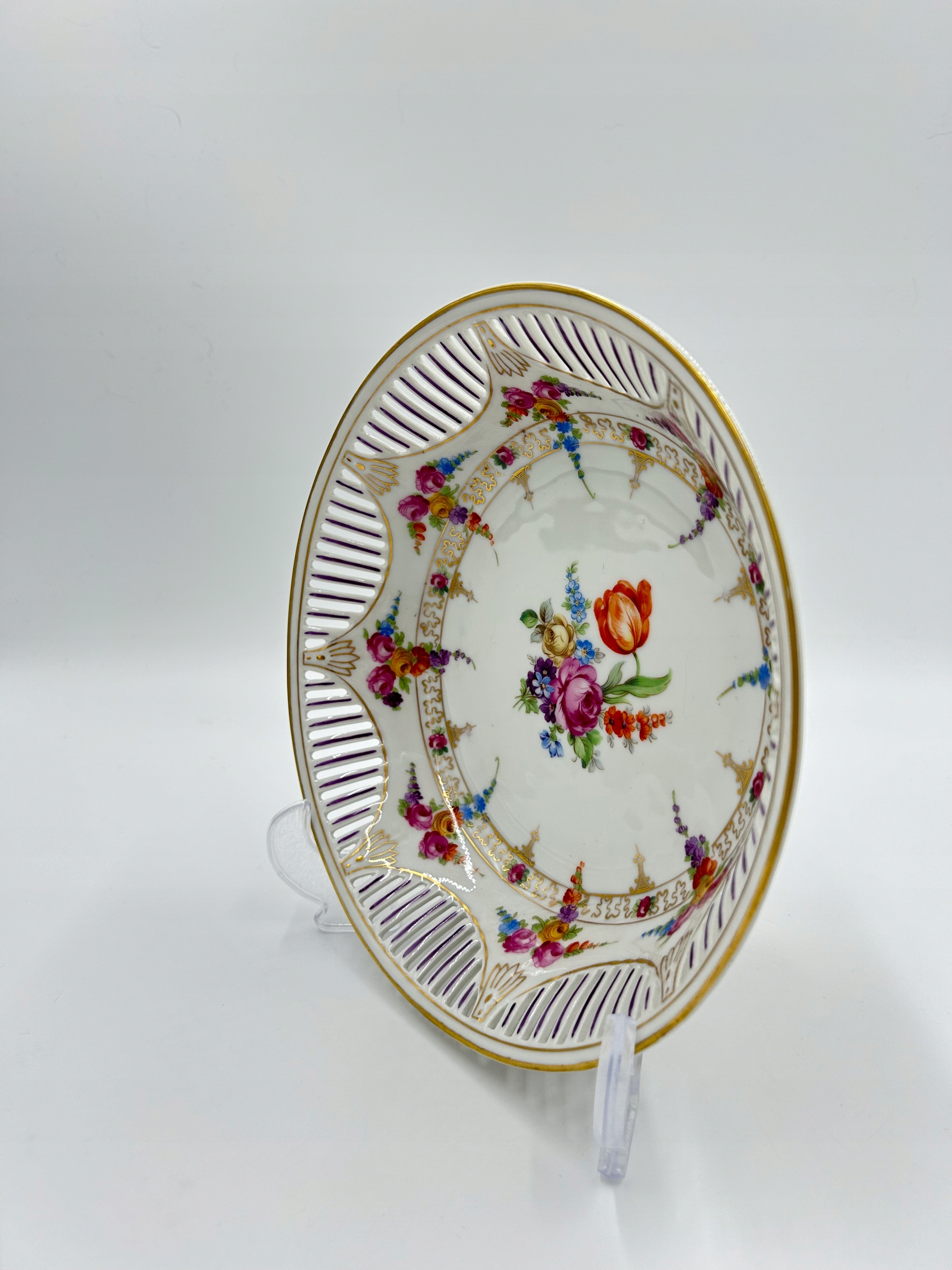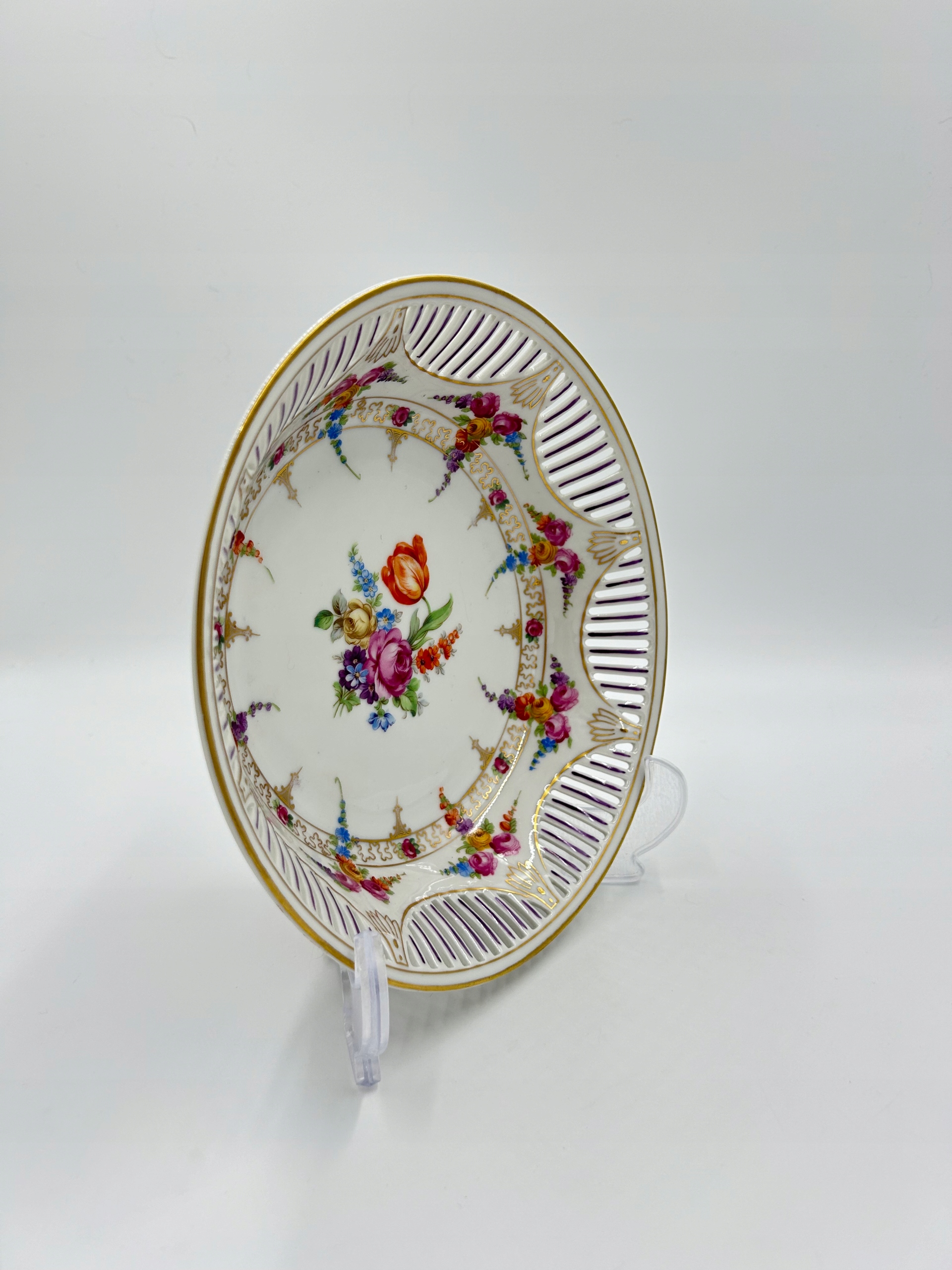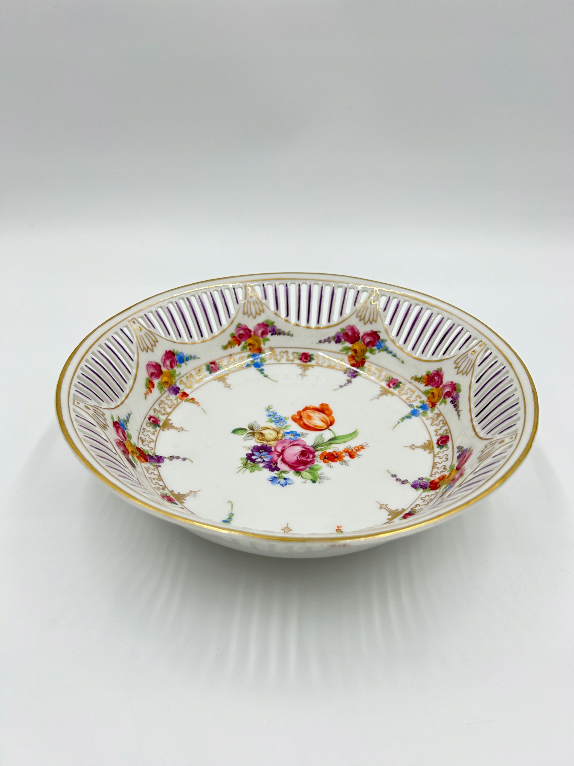 Тема продажу - прекрасний плід відкритого виробництва Manufaktura Schumann Bavaria. Велика фруктова вода, прикрашена квітковим мотивом, золотим краєм та облямівкою, краю відкритої роботи. Прекрасний декоративний елемент, унікальна копія.