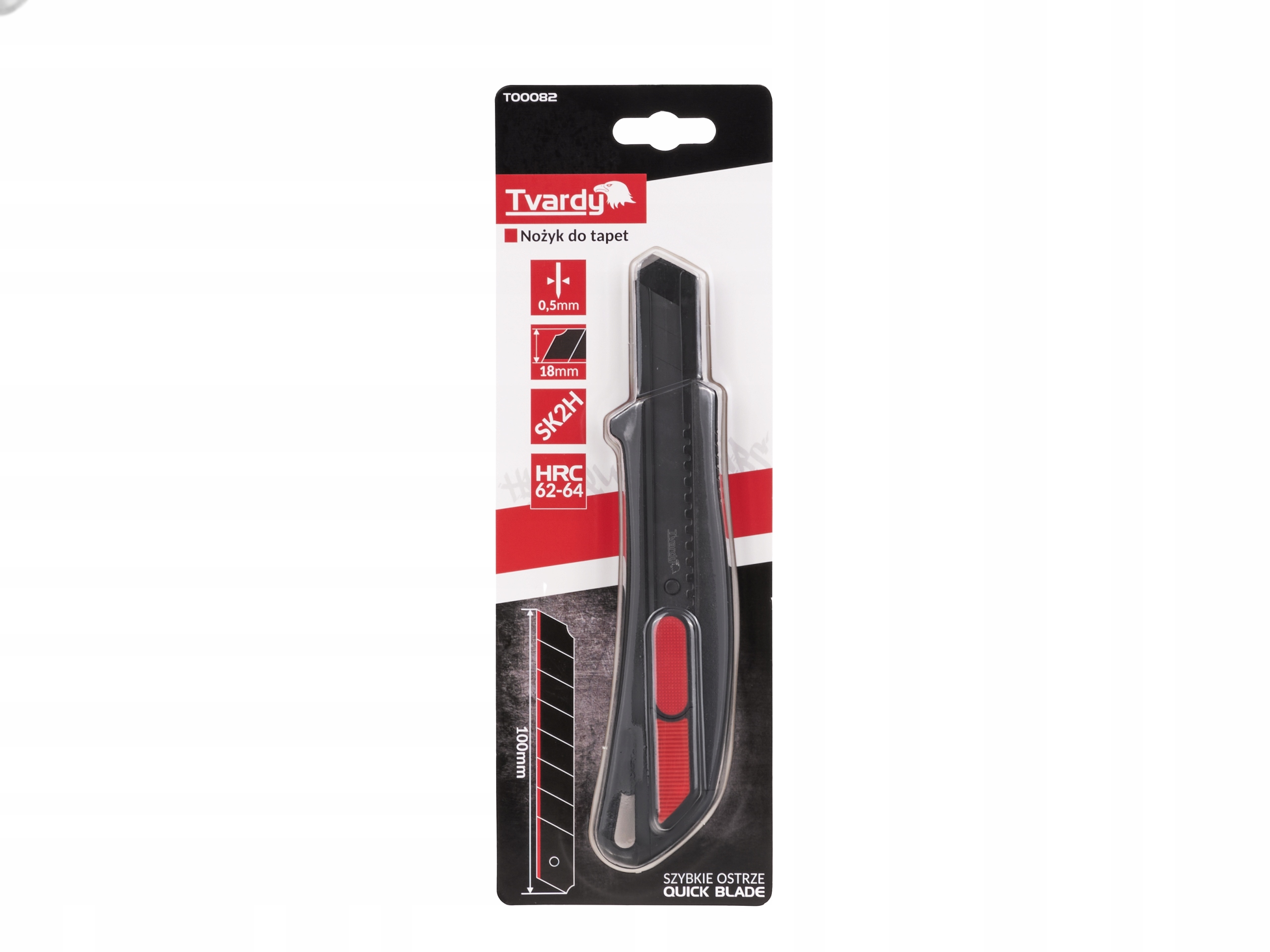 8-сегмент-зламане лезо, виготовлене зі сталі SK2h, є ключовим елементом ножа TVARD, , що характеризується винятковою міцністю та продуктивністю. сталь SK2h характеризується високою твердістю, досягаючи близько 64 HRC , що робить його надзвичайно стійким до зносу та деформації. Ця вражаюча твердість перетворюється на дуже високу ріжучу агресію, що забезпечує ефективне різання різних матеріалів, включаючи пластмаси, паперові чи тканини, без необхідності часто заміни леза.