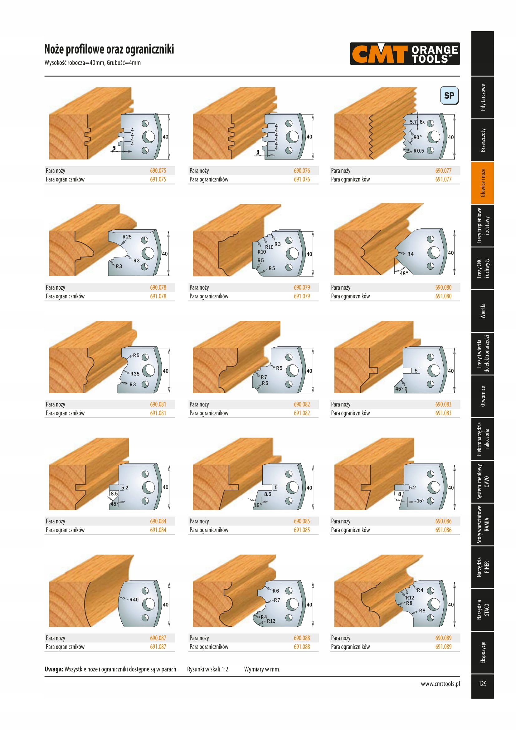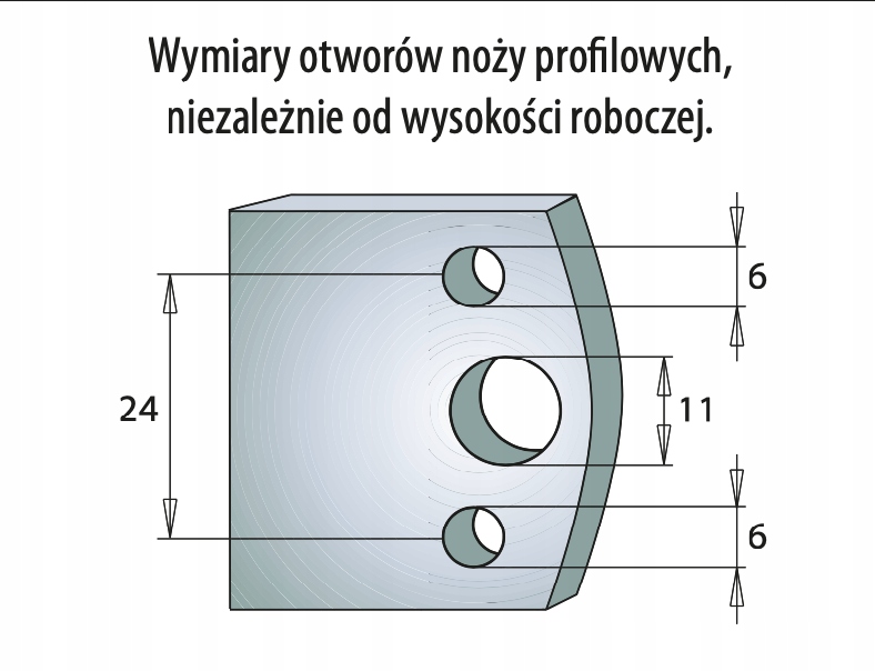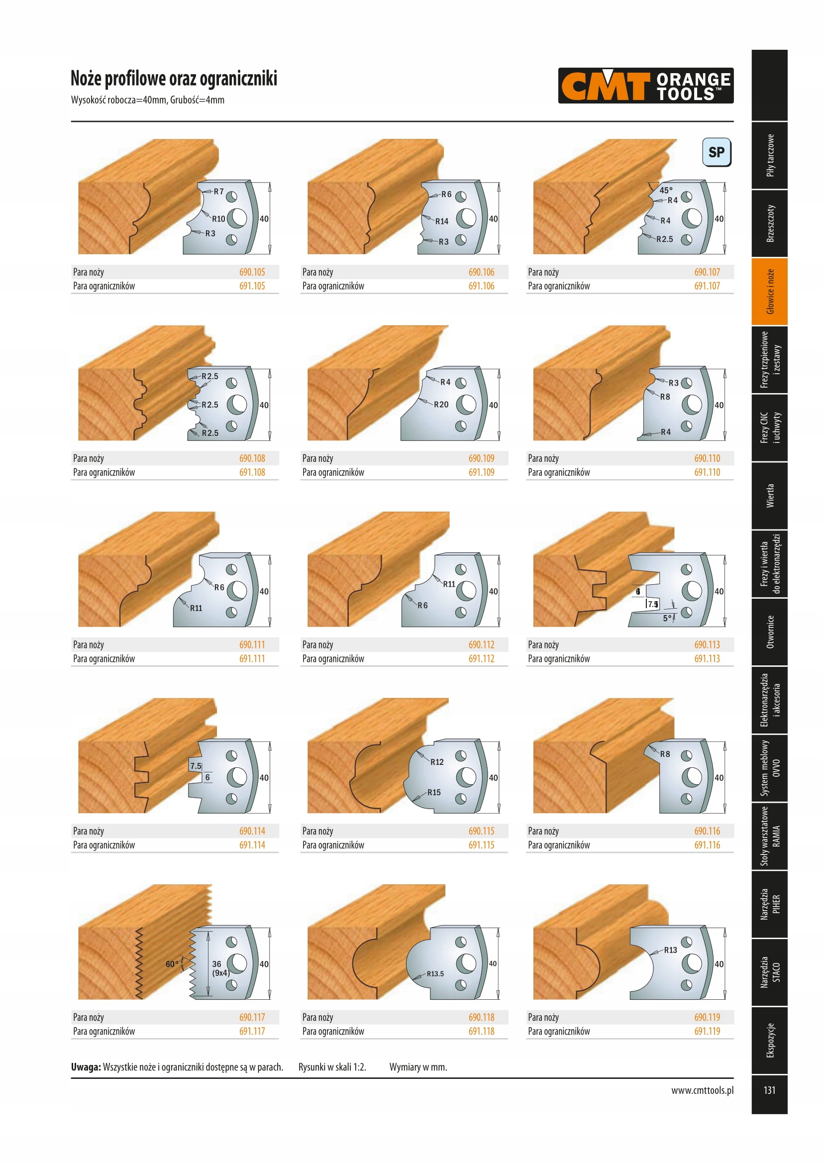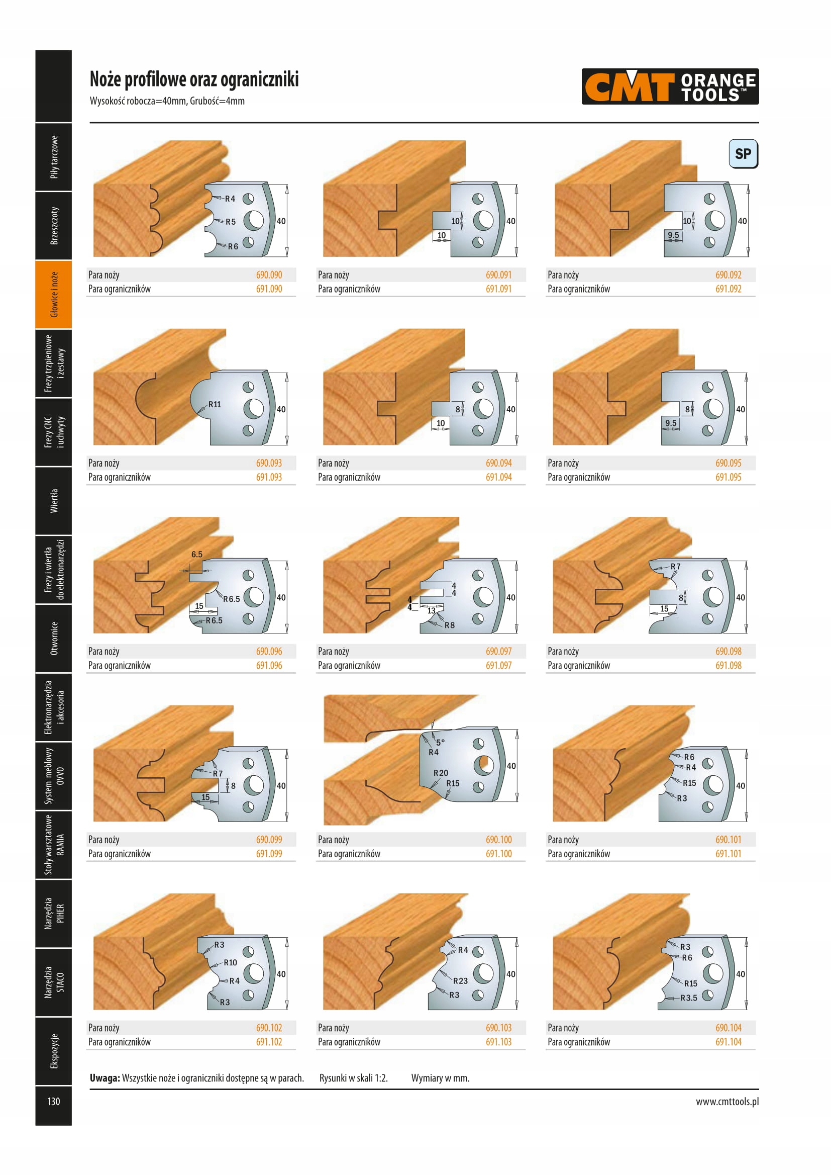 Понад 100 різних профілів ножів доступні з однаковою відстанню між отворами - доступні версії висотою 40 мм і 50 мм.