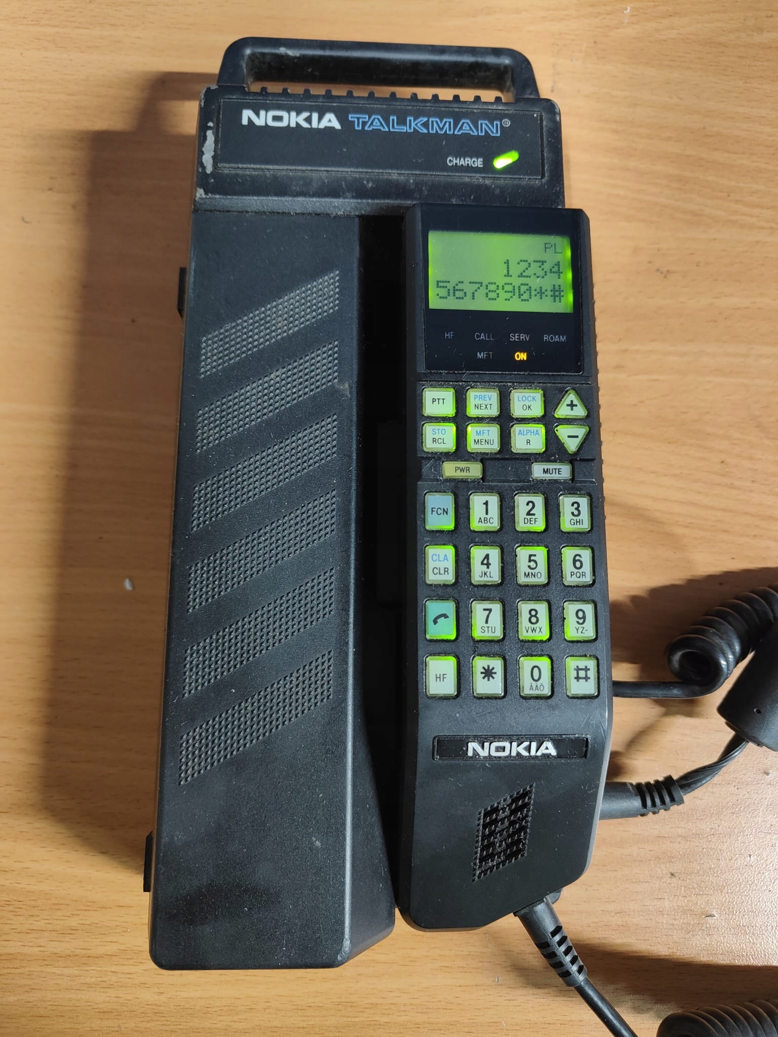 nokia talkman 620. Перша комірка, доступна в Польщі в Салоні у Варшаві 18 червня 1992 року. Починається телефон, який можна побачити на знімках, клавіатура також працює. Телефон лежав у нижній частині гардеробу з 90 -х (він був відкладений як ефективно, але його замінили легшою моделлю, тому він знаходиться у хорошому візуальному стані. На жаль, сліди зарядного пристрою та антени втрачалися.