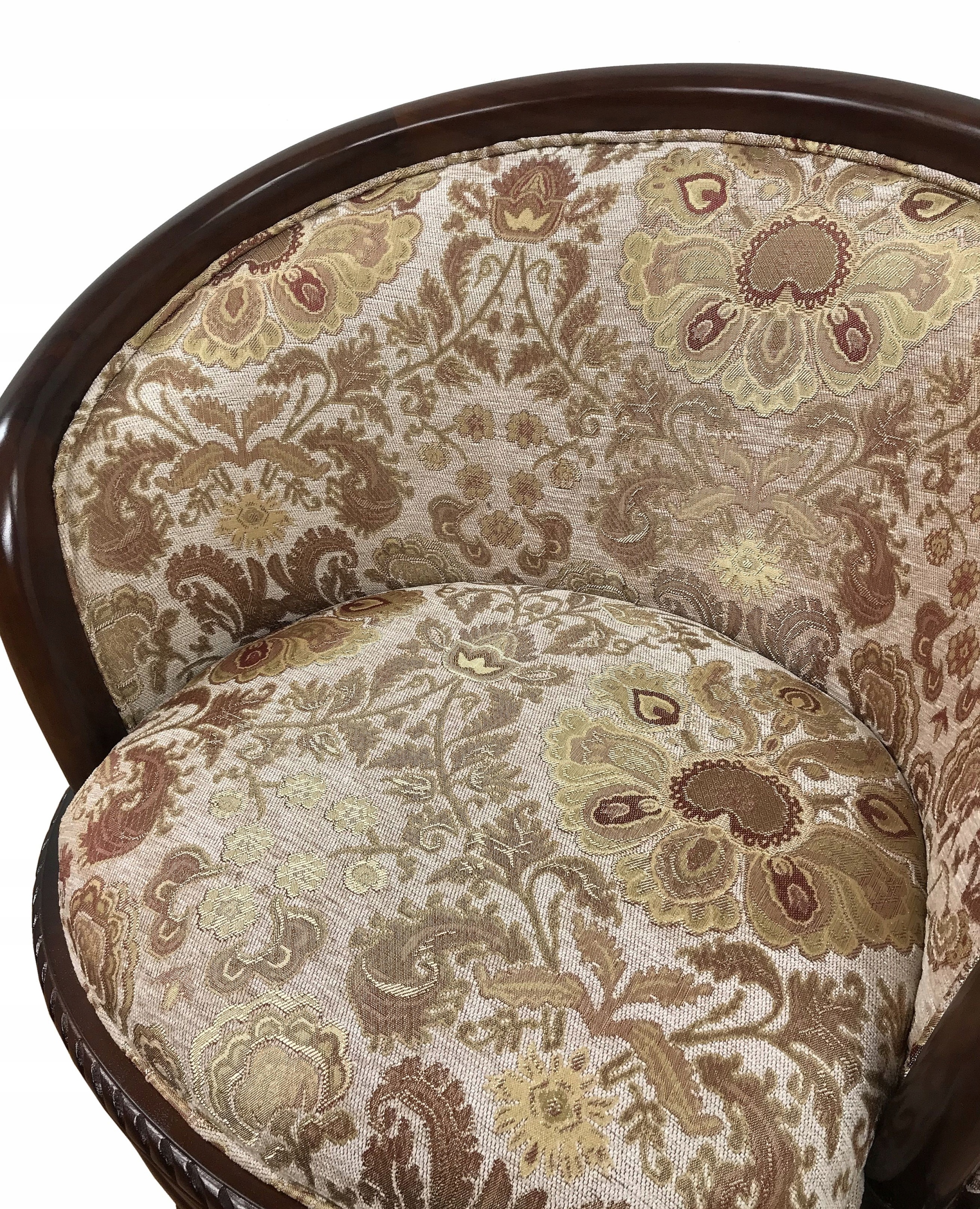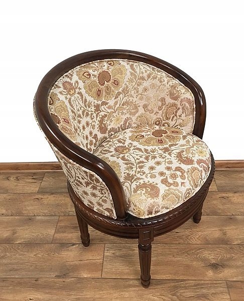 Представляємо вашій увазі крісло з красивою оббивкою. Делікатне різьблення надає цьому кріслу характер і робить його неймовірно красивим, а стилізоване м’яке сидіння є ідеальним поєднанням комфорту та естетики.