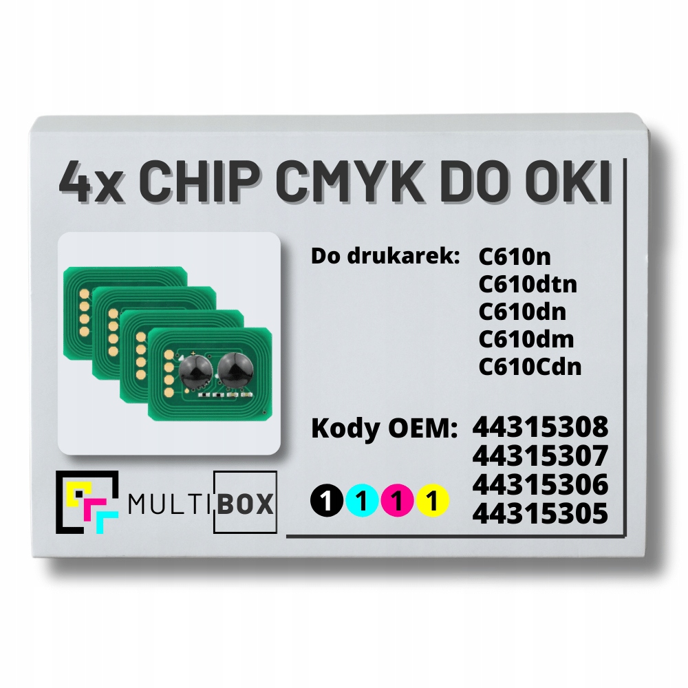 - Назва продукту: 4 пакети мікросхем CMYK для принтерів OKI C610 Multibox