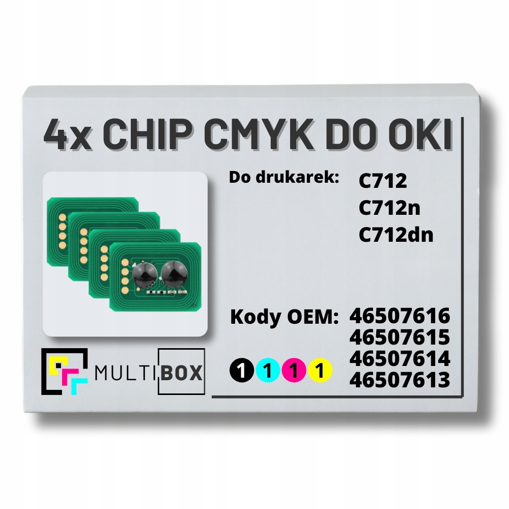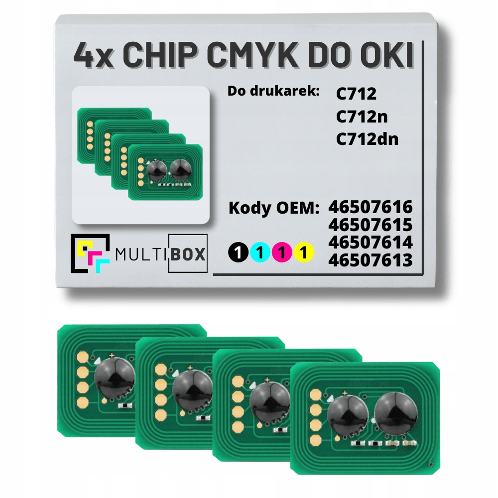 Ми представляємо розширений набір із чотирьох чіпів CMYK від Multibox, створених спеціально для принтерів OKI C712. Цей набір є ідеальним рішенням для тих, кому потрібна найвища якість і продуктивність друку в напруженому офісному середовищі.
