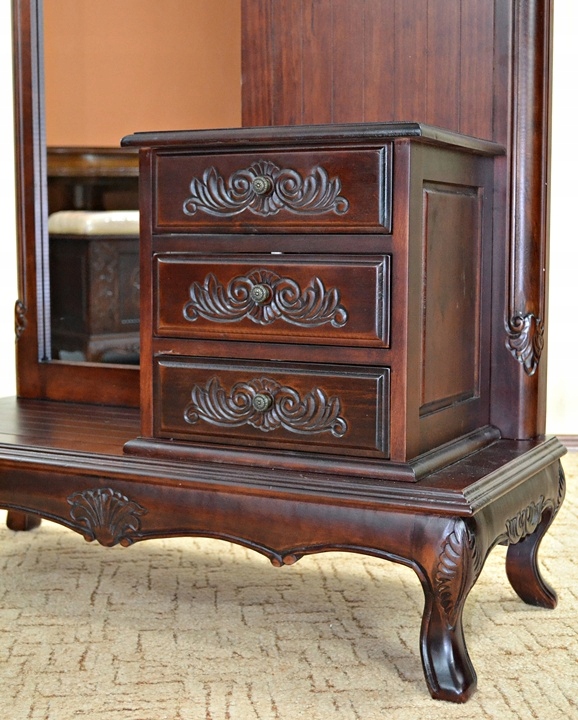 Запрошую придбати дуже декоративну, стильну вішалку з тумбою та дзеркалом. Меблі виготовлені з екзотичної деревини - похідної червоного дерева. Вішалка дуже стильна і функціональна. Виглядає красиво.