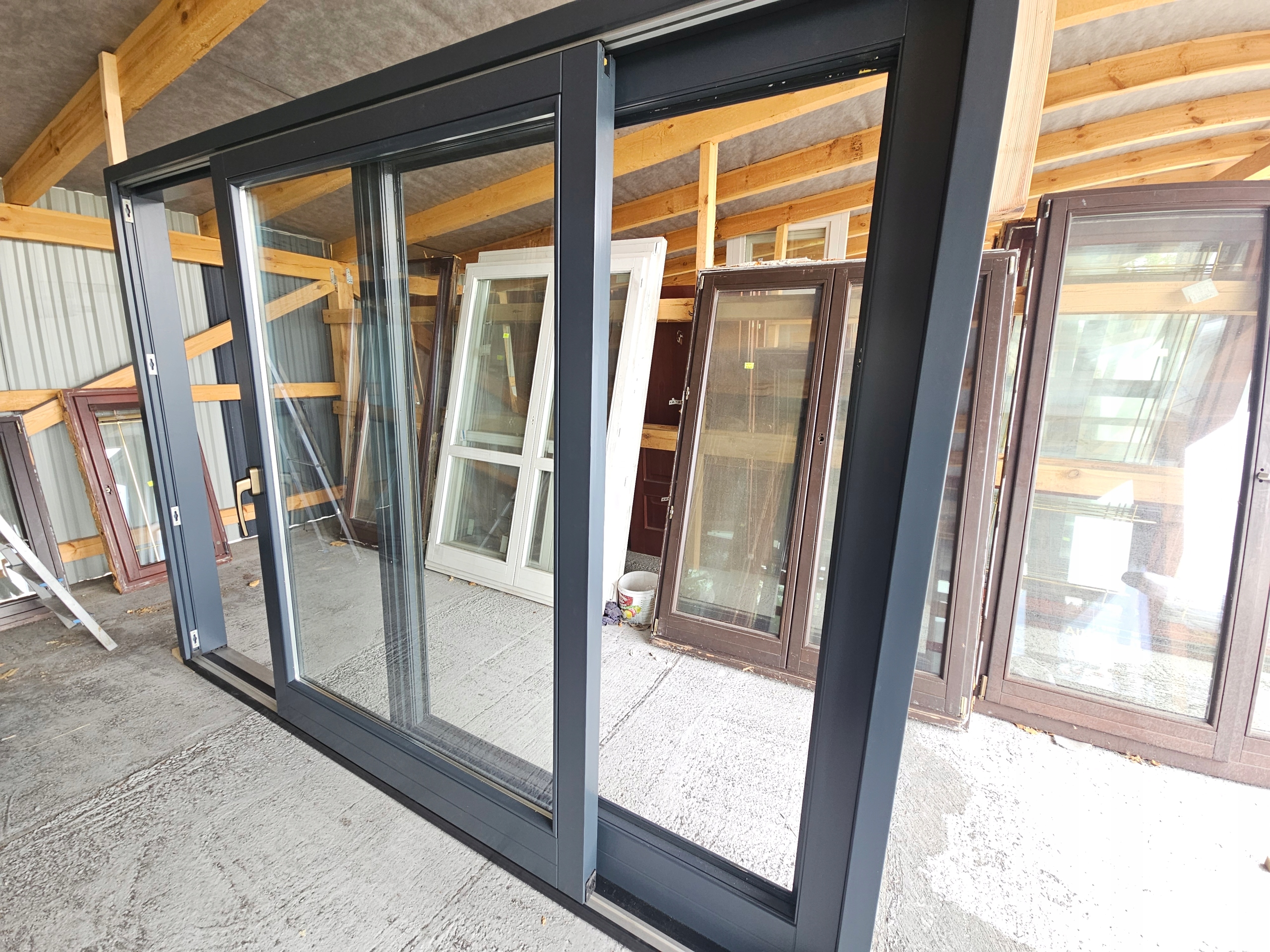 NOWE DRZWI/OKNO Tarasowe Przesuwne HST Drewniane Antracyt HS 300x220cm