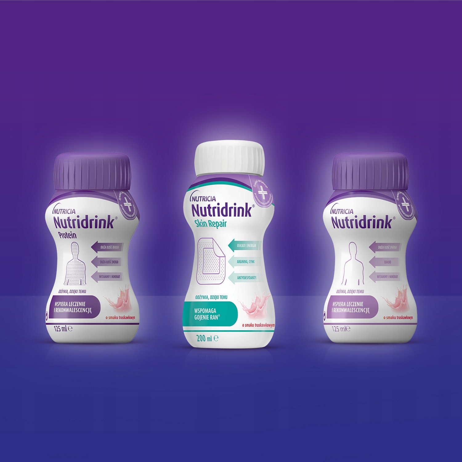 Nutridrink - це їжа для спеціальних медичних цілей для дієтичного лікування недоїдання та ризику недоїдання, пов’язаного із захворюванням. Nutridrink Protein - це їжа для спеціальних медичних цілей для дієтичного лікування недостатнього харчування та ризику недоїдання, пов’язаного із захворюванням, особливо у пацієнтів із підвищеною потребою в білку. Nutridrink Skin Repair - це харчування спеціального медичного призначення. Для дієтичного лікування пролежнів та інших ран, які важко загоюються. Використовувати під наглядом лікаря.