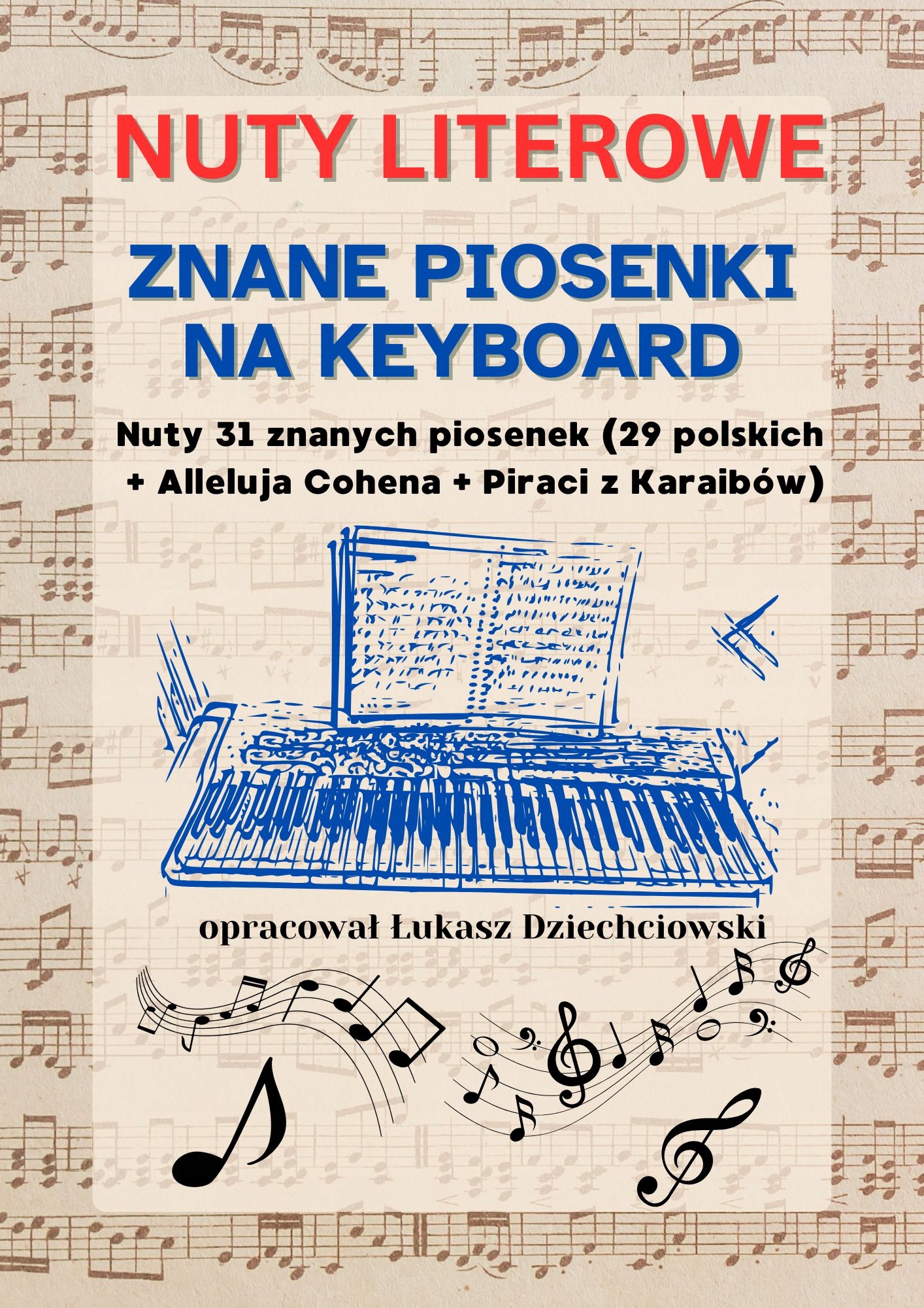 Nuty literowe piosenki na keyboard, pianino, 31 piosenek, słowa, łatwe