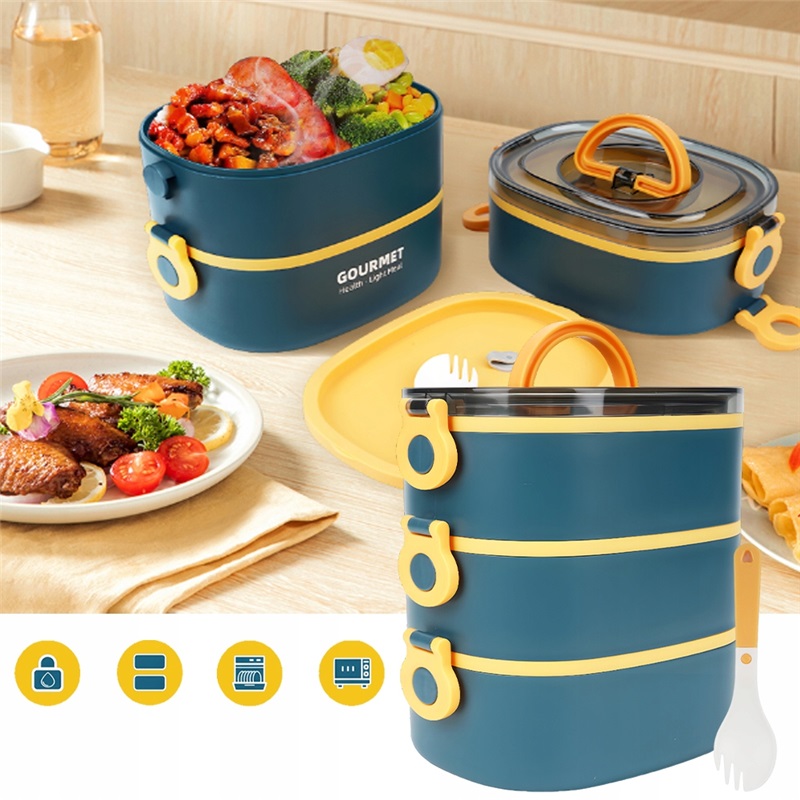Обідня коробка 3-рівня обідня контейнер Bento для дорослих