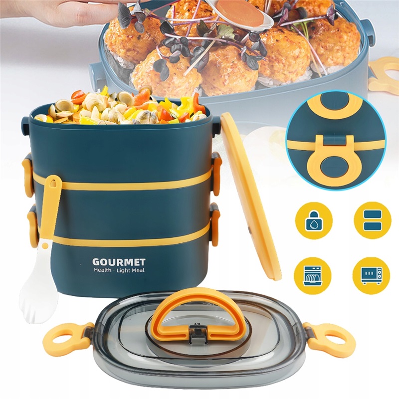 ❤ Велика потужність: коробка для обіду для дорослих складається з 3 шарів загальної місткості 2800 мл. Велика коробка для обіду підтримує свіжість їжі та допомагає підтримувати харчовий баланс. Примітка. Не кладіть кришку в мікрохвильову піч або посудомийну машину.
