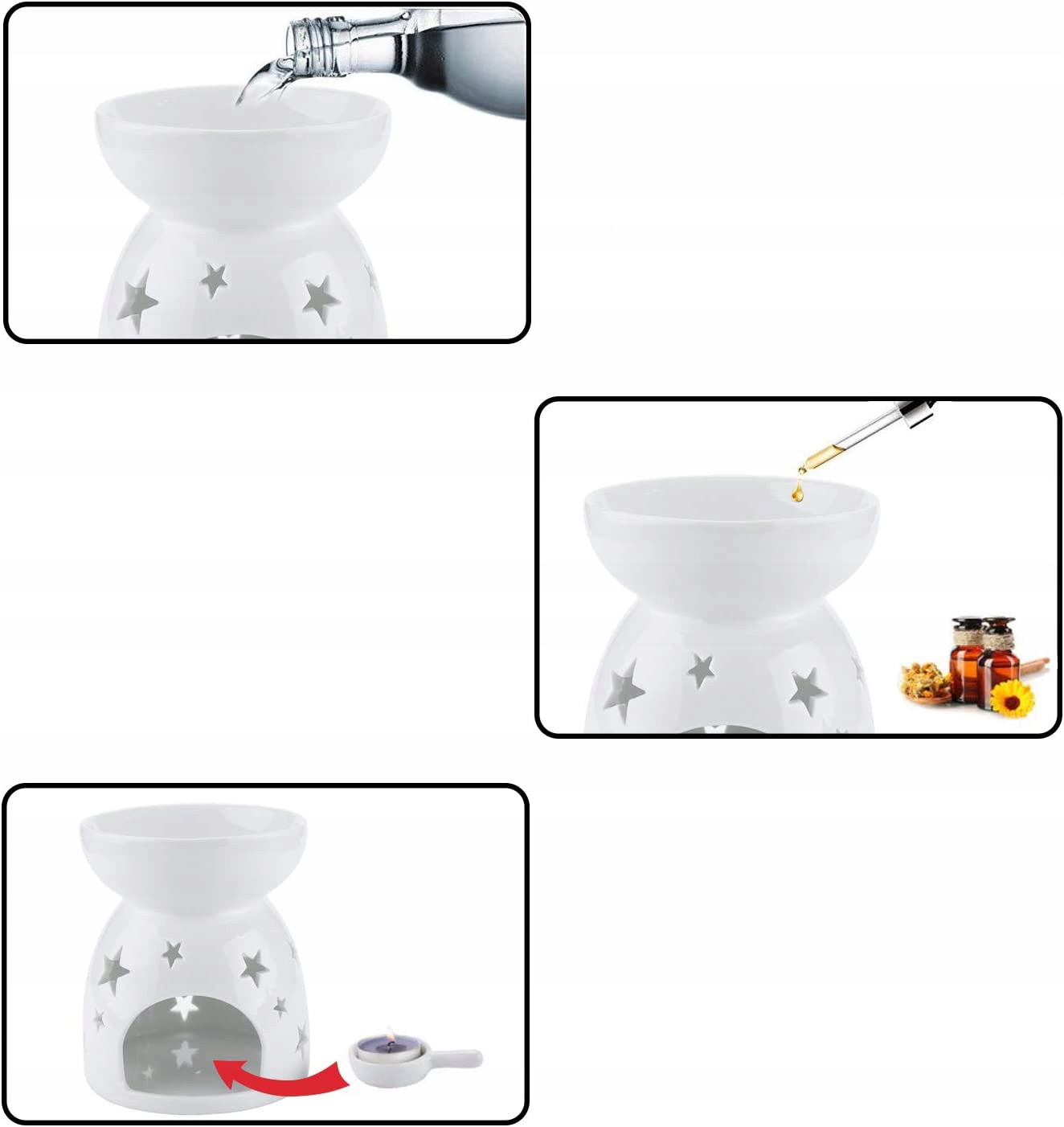 💟💟[Особливий дизайн] -Поставляється з ложечками для підігріву для легкого вставлення та вилучення, не t хвилюватись, що палець не поранить вогонь свічки; конструкція з великим мундштуком ефективно подовжує час горіння ефірних олій, приємний і чистий аромат поширюється від дифузора олії. Розсіюється повільно і довго.