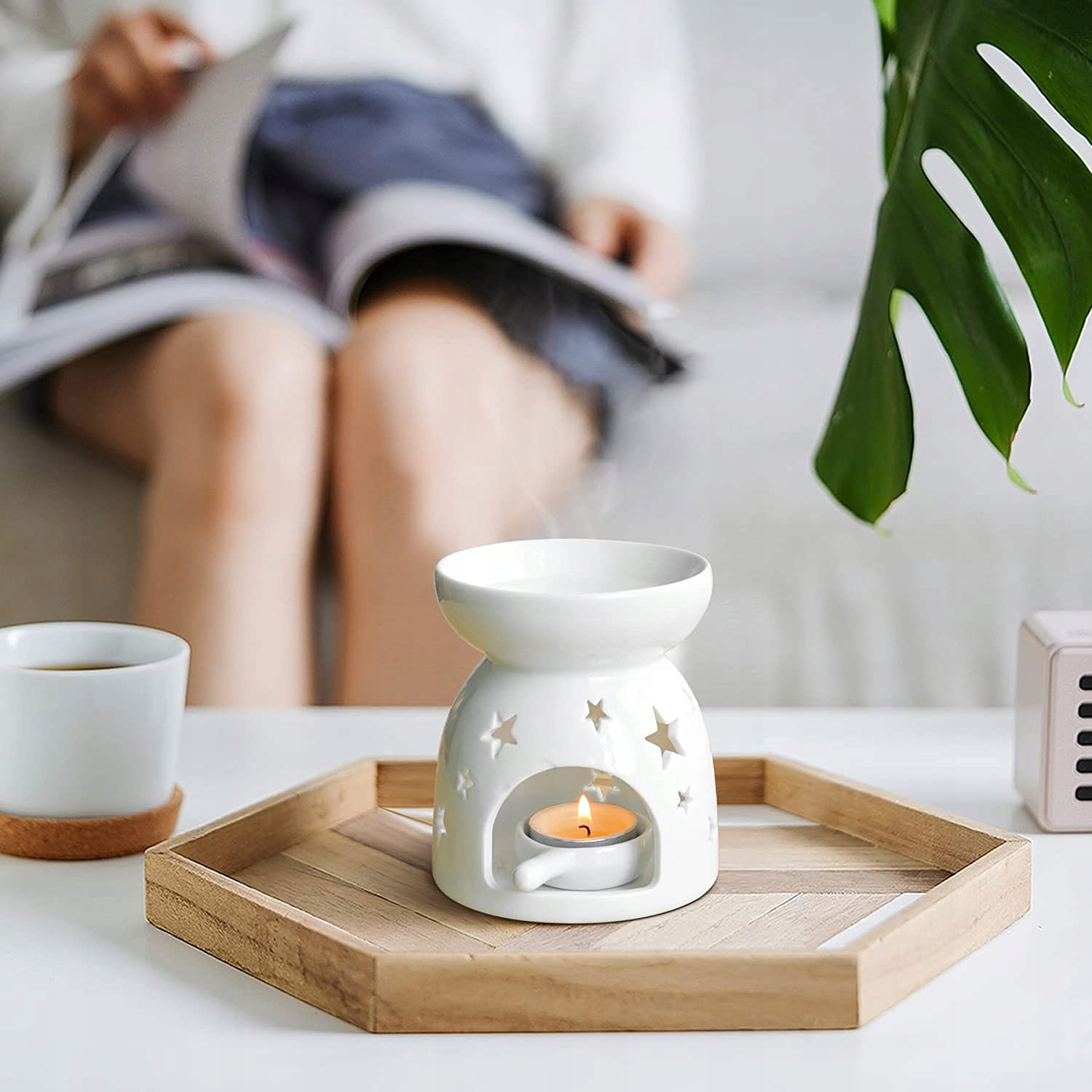Завдяки кип'ятінню ефірної олії підставка для чайної лампочки розповсюджує свій романтичний аромат по всій солодкій кімнаті. Приємний аромат і мерехтливе світло допомагають розслабитися після робочого дня.