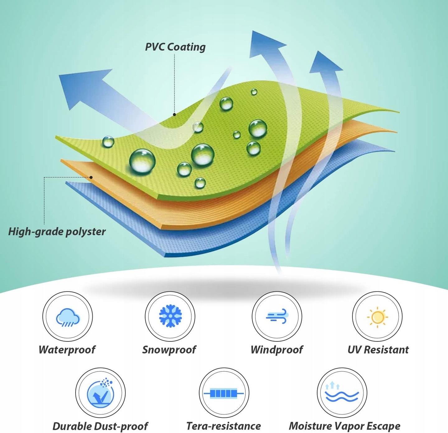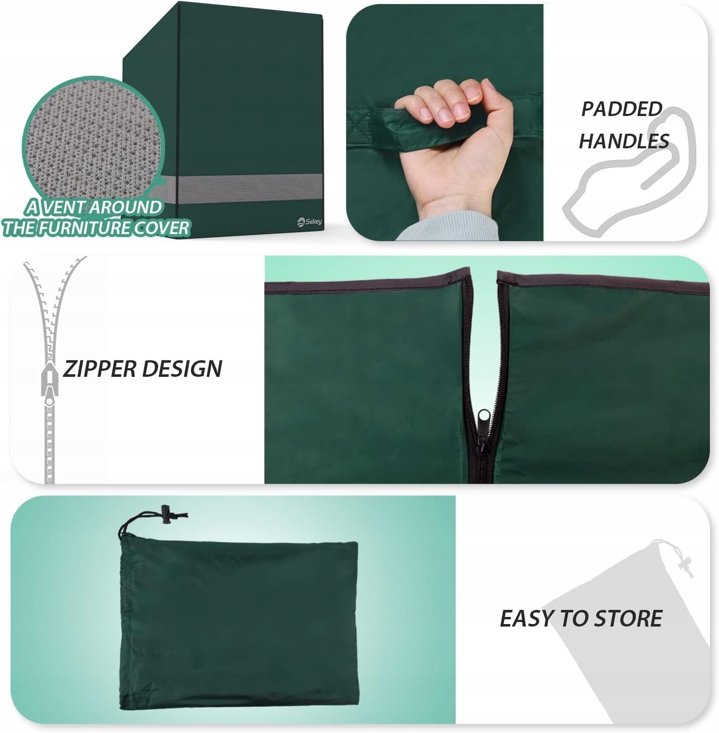 ✅ Водонепроникний та міцний матеріал: Кришка садових меблів виготовлена з Oxford 210D матеріалу, водонепроникна тканина покрита ПВХ і має подвійні шви. Цей тип матеріалу дуже гнучкий і дуже довговічний, він може захистити меблі від сонячного світла, вітру, дощу, снігу та інших, водонепроникний і стійкий до розриву. : 2 підкладені ручки полегшать збірку та розбирання. Закриття смужки до засувки та регульованих рядків побудовані таким чином, щоб протистояти найгіршим стихійним лихам, від сильного вітру до сильних снігових навантажень. B> Садові меблі дуже прості в очищенні. Набір включає сумку для зберігання. Легке складання, зберігання та транспорт.