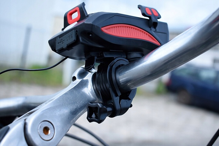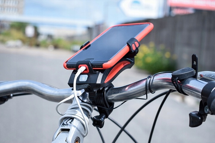 Водонепроникна велосипедна лампа з вбудованою ручкою телефону, 5-тонним ріжком та березом живлення!